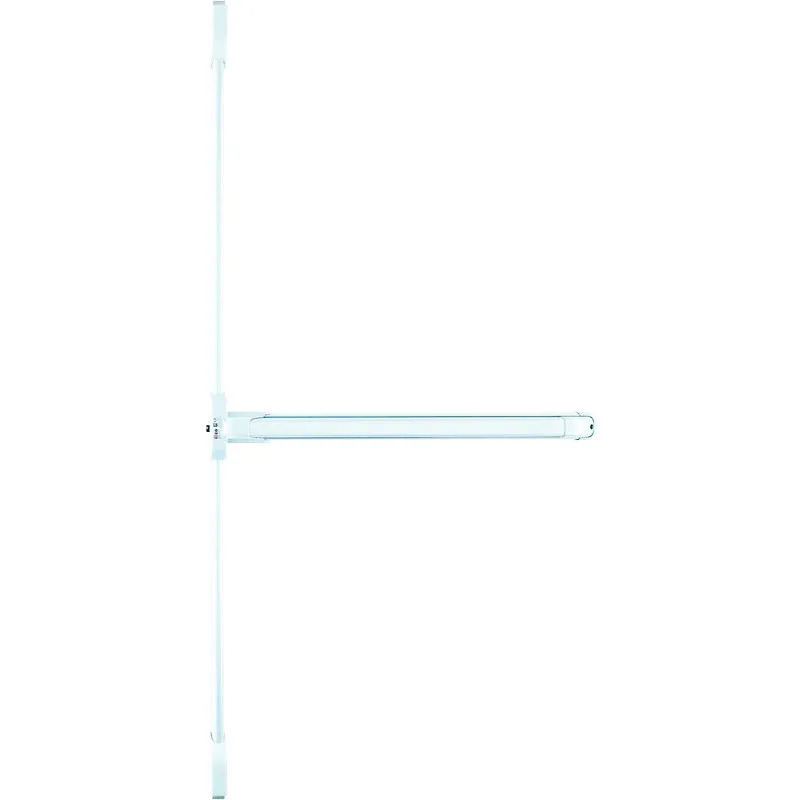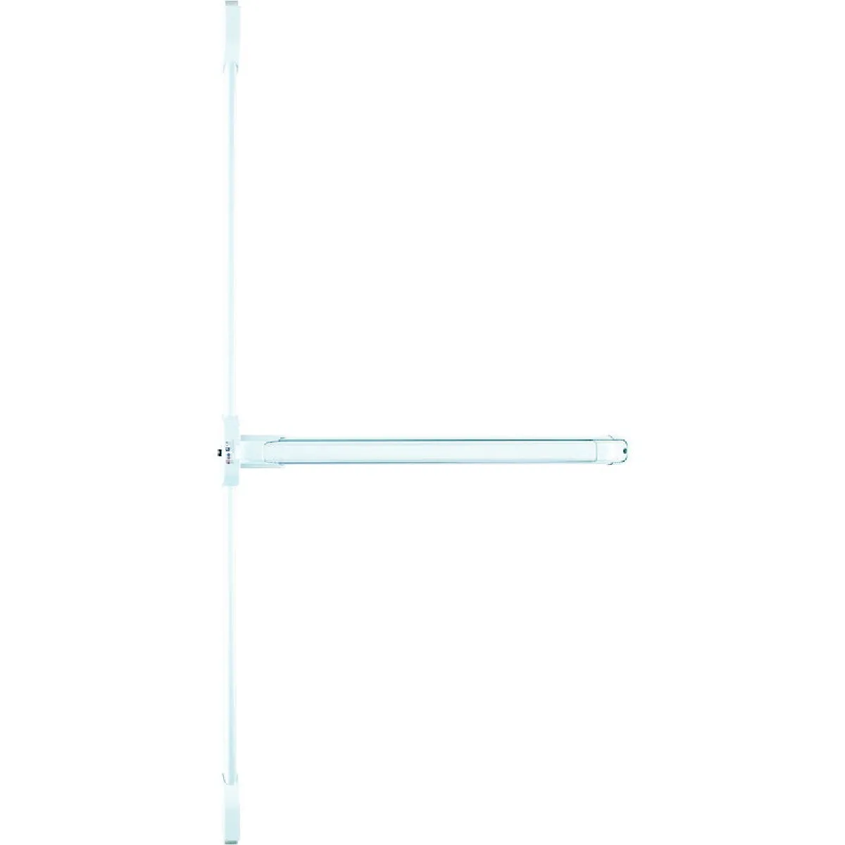 La barre de 1130 mm en standard couvre des vantaux de grande largeur pour une pression homogène sur toute la traverse. La conformité à la norme NF EN 1125:2008 garantit la manuvre d'urgence par poussée, utile lors d'évacuation. Le coloris blanc s'intègre discrètement aux portes techniques ou aux couloirs. L'ensemble fournit une solution cohérente pour sorties de secours en bâtiments tertiaires et locaux recevant du public, en privilégiant la simplicité d'usage et la maintenance facilitée.