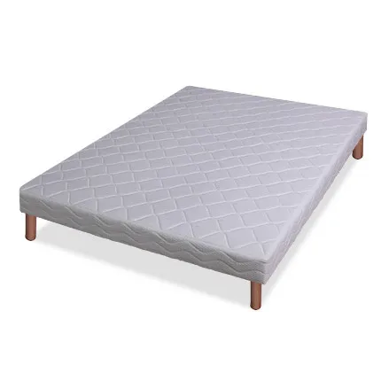 Le coutil stretch contribue à une surface respirante et facile d'entretien. La caisse en pin offre une base rigide et fiable, tandis que la hauteur totale maîtrisée avec pieds à visser facilite l'accès au lit et le passage de l'aspirateur sous la structure. L'emballage soigné avec gouttières carton et housses polyéthylène protège le produit jusqu'à la pièce de destination. Le montage se résume au vissage des pieds, pour une installation rapide dès la réception.