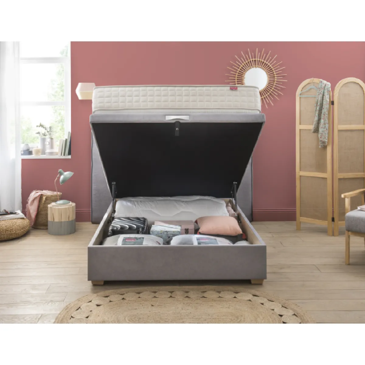 - Solide et pratique : offre une grande capacité de rangement, structure robuste et solide, ouverture du sommier sans effort et maintien du matelas lors de l'ouverture