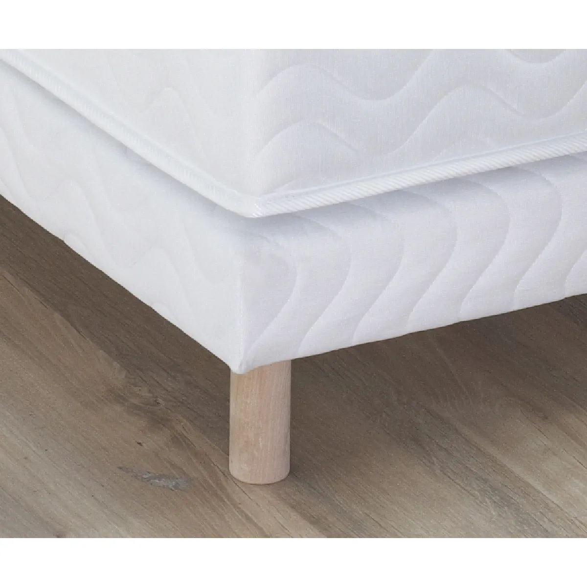 Le tissu matelassé, avec 5 mm de mousse intégrée, propose une surface d'appui régulière qui accompagne les mouvements nocturnes sans altérer la fermeté du support. La toile inférieure anti poussière aide à garder l'intérieur propre, utile dans des pièces exposées. Les pieds en bois brut de 12 cm se vissent pour un montage simple et une garde au sol facilitant le passage d'un aspirateur. Couleur blanche pour une intégration visuelle discrète avec différents styles de literie. Vendu sans matelas.