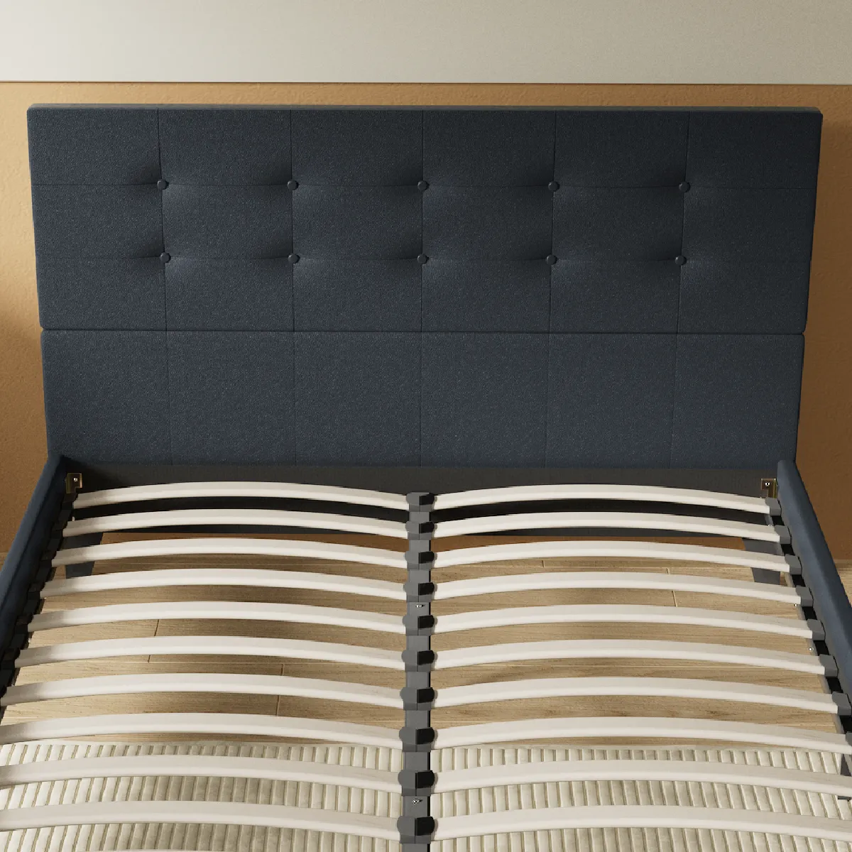 - Type : Cadre à lattes avec tête de lit boutonnée