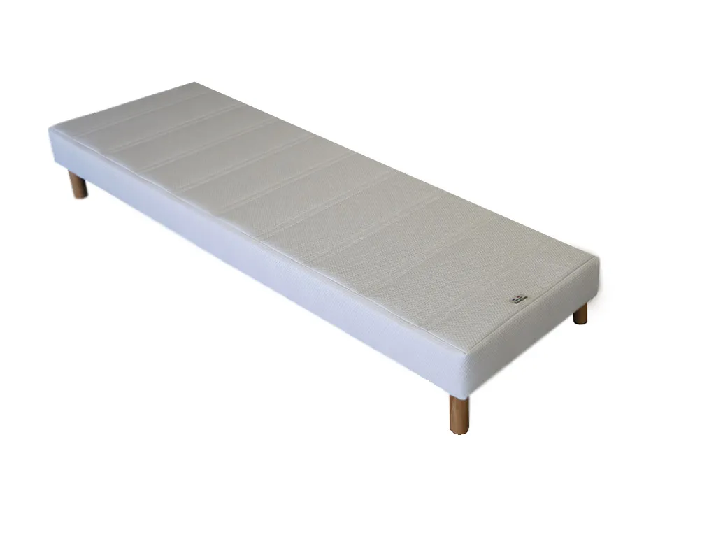 Le revêtement en tissu 100 % polyester avec ouate anallergique crée une surface nette et pratique à entretenir. La toile de fond anti poussière préserve la face inférieure de l'accumulation d'impuretés. Les 4 masses d'angle avec filetage 8 mm permettent d'ajouter des pieds compatibles ou d'insérer le sommier dans un lit. Le sommier est livré sans pieds, et peut ainsi s'adapter à différentes configurations d'usage.