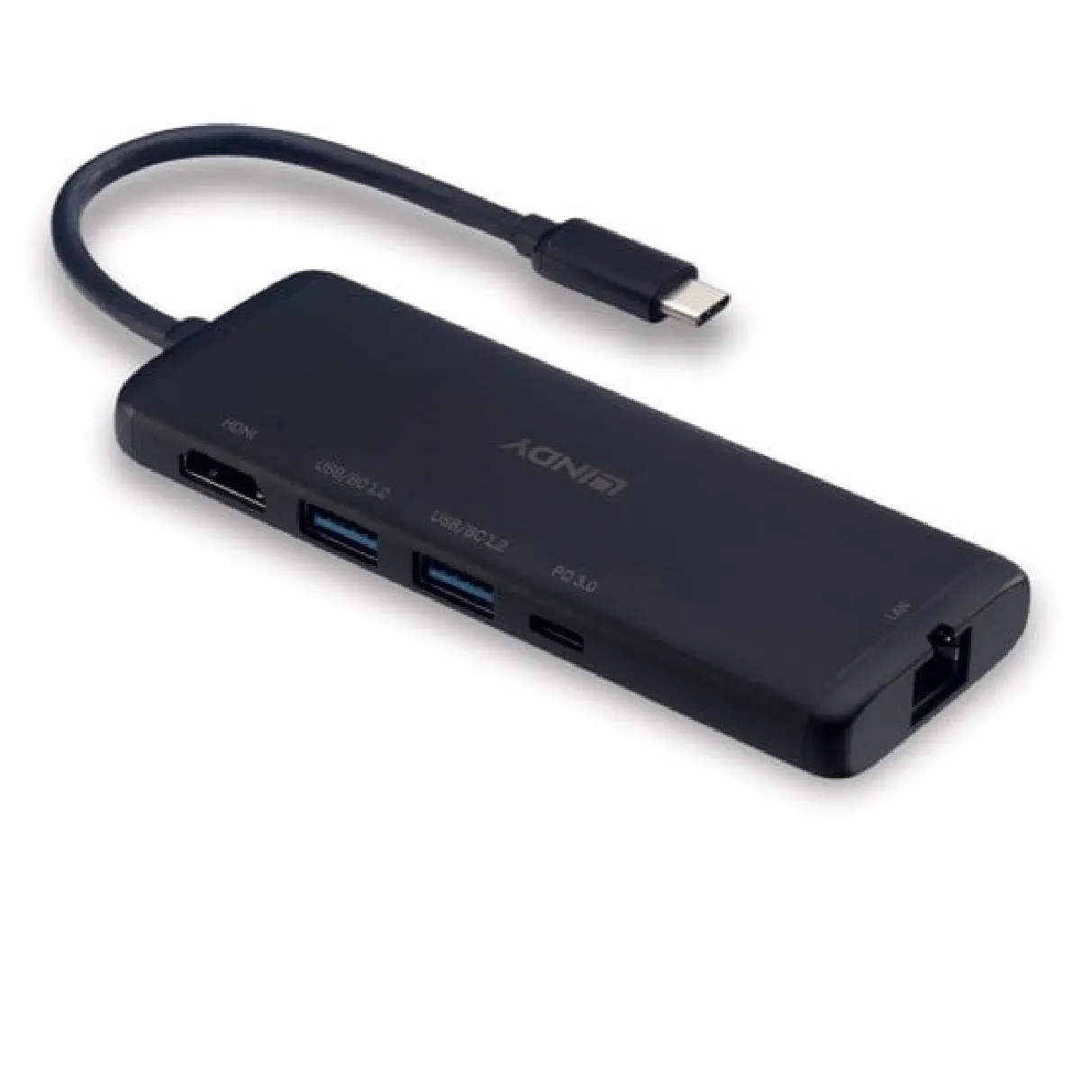 Lindy 43358. Technologie de connectivité: Avec fil, Interface de l'hôte: USB 3.2 Gen 1 (3.1 Gen 1) Type-C, Délivrance de la puissance USB jusqu’à: 100 W. LAN Ethernet : taux de transfert des données: 10,1000 Mbit/s. Couleur du produit: Noir, Cartes mémoire compatibles: MicroSD (TransFlash), SD, Résolution (numérique maximum): 3840 x 2160 pixels. Largeur: 115 mm, Profondeur: 43 mm, Hauteur: 12 mm. Quantité: 1 pièce(s), Largeur du colis: 174 mm, Profondeur du colis: 194 mm