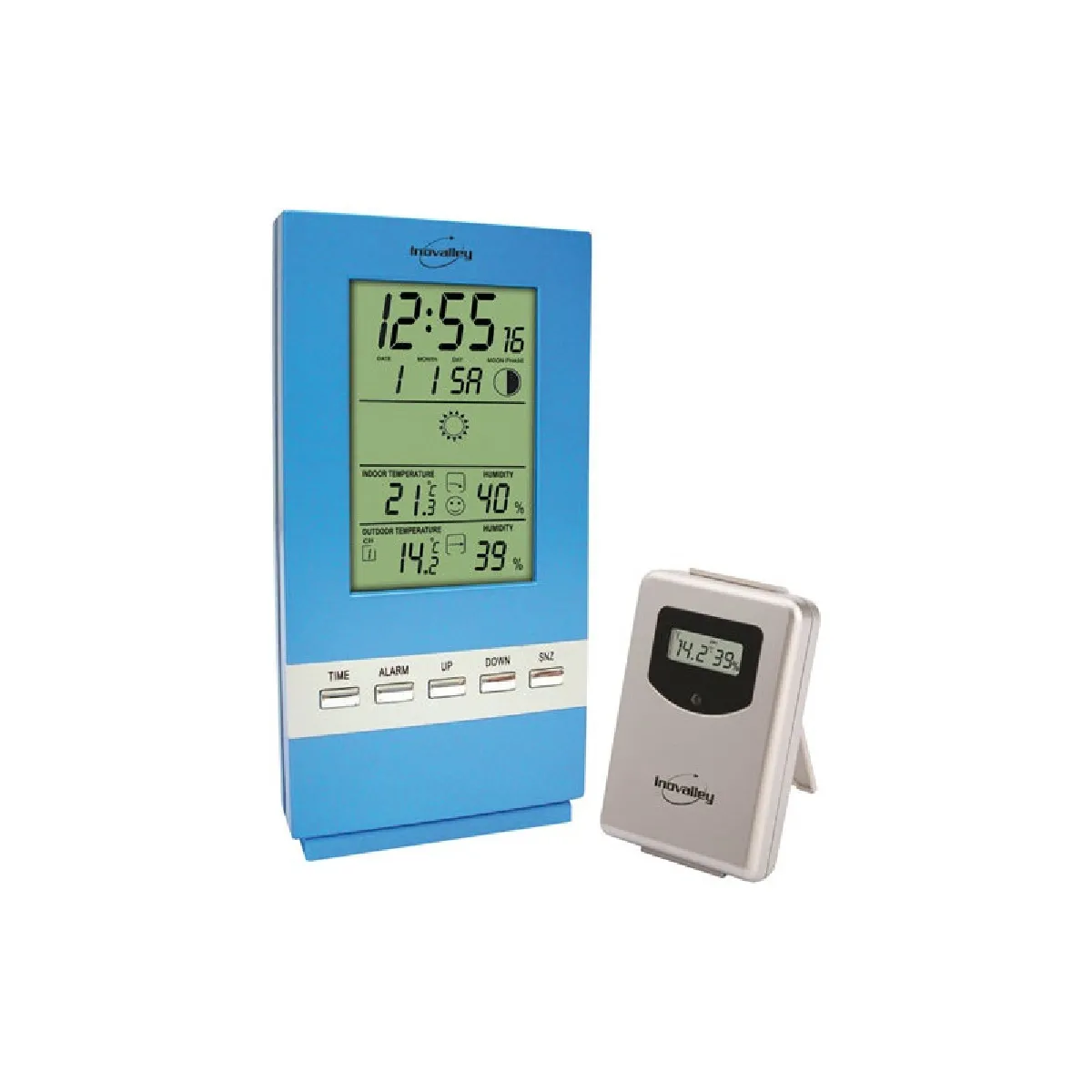 Station météo sans fil - Température et hygrométrie int./ext. - Phase lunaire - Calendrier et réveil