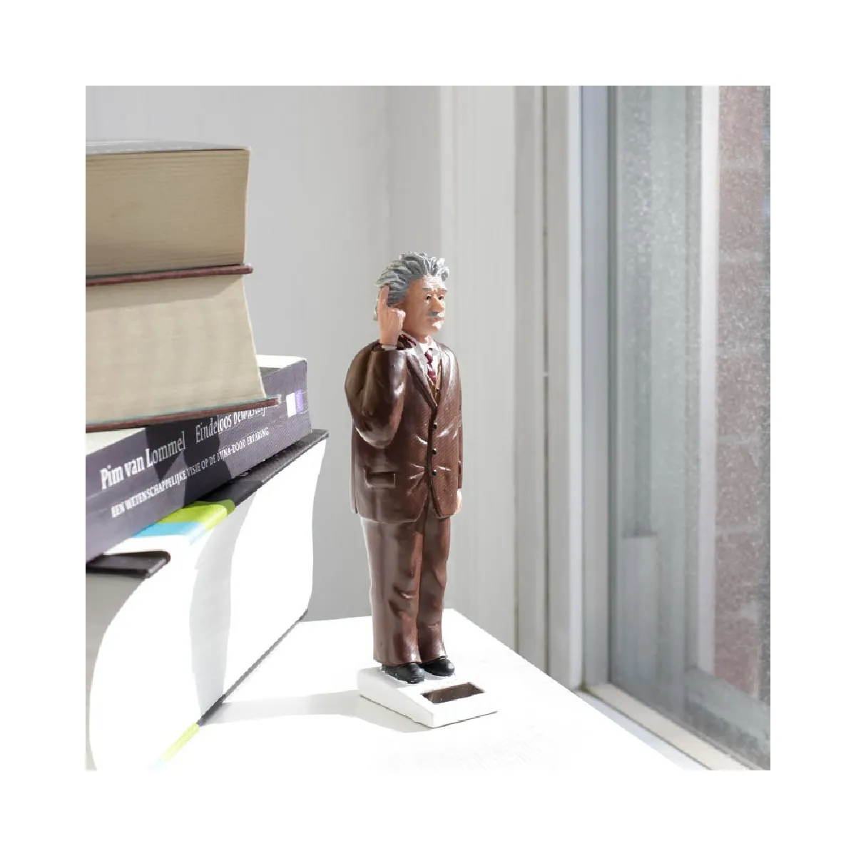 Fonctionnant à l'énergie solaire, cette figurine réfléchira sans cesse en bougeant son doigt sur sa tempe ! l'Einstein solaire vous rappellera qu'il faut réfléchir avant d'agir ! Dimensions : 18 x 5 x 5cm Matière : plastique
