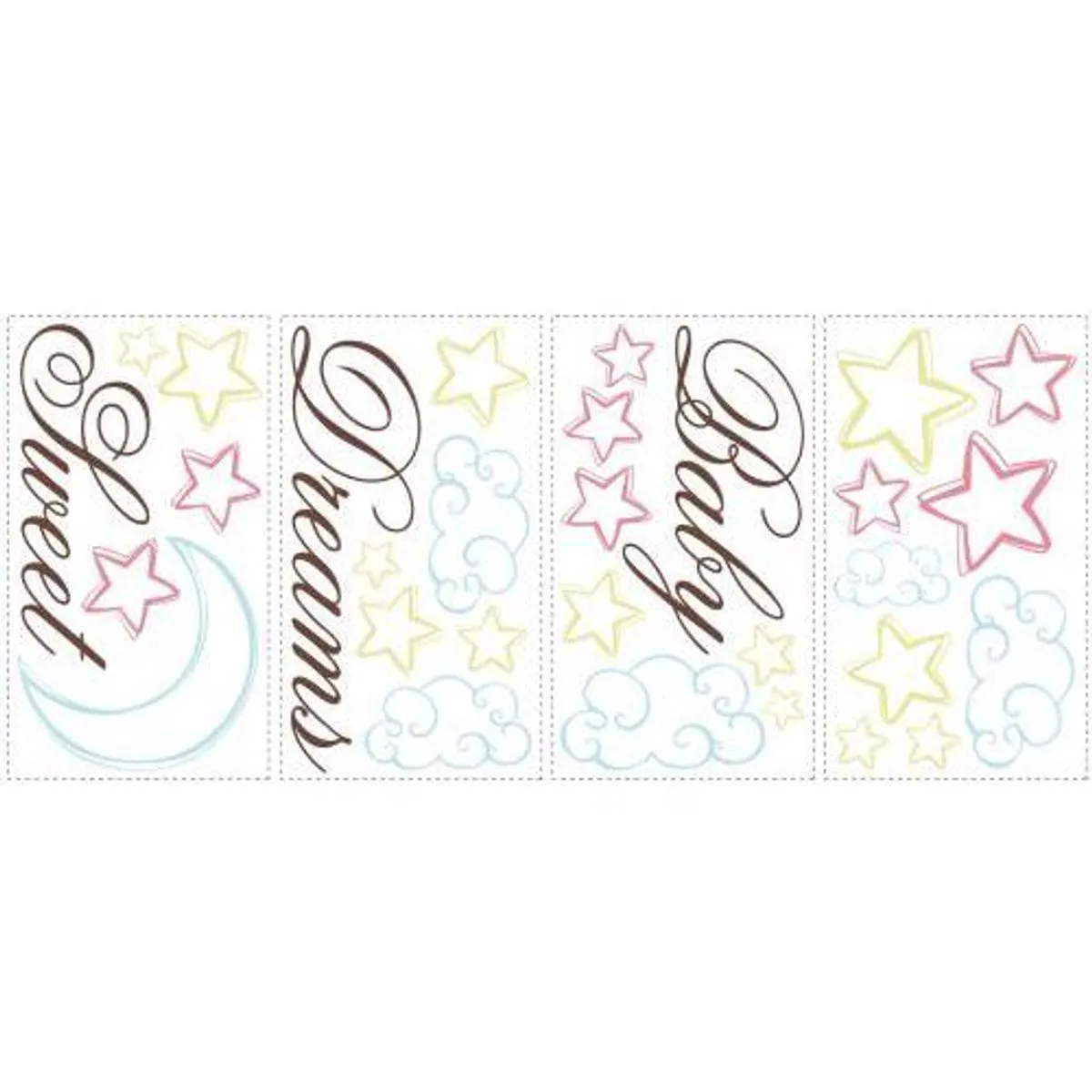 Thedecofactory SWEET DREAMS BABY - Stickers repositionnables texte, étoiles et nuages |