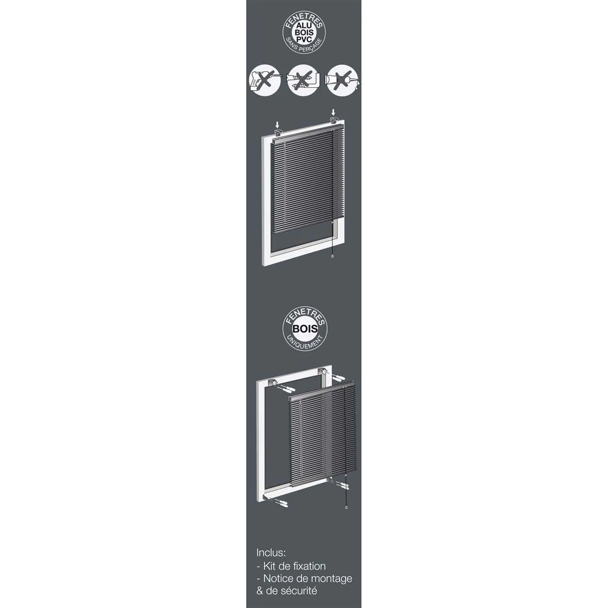 Store à lamelles - Élégant - Facile d'entretien - Aluminium - L 60 x H 180 cm