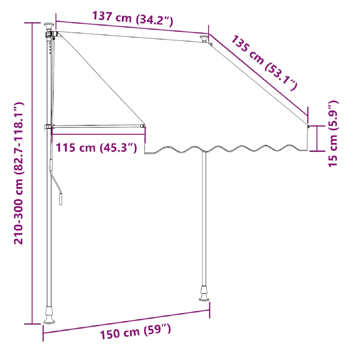 - Utilisation polyvalente : ce produit peut non seulement être utilisé comme auvent normal, mais aussi pour couvrir complètement la fenêtre. Cet auvent est le choix idéal pour votre espace de vie extérieur et peut être actionné manuellement.