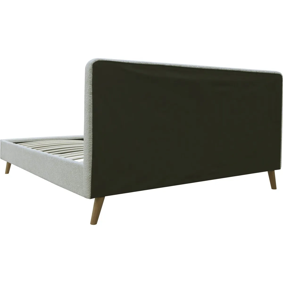 La structure en contreplaqué de ce lit double garantit une stabilité et une durabilité exceptionnelles. Le tissu en bouclettes offre une texture douce et confortable, tandis que la matière cachemire d'agneau rend le lit encore plus luxueux.