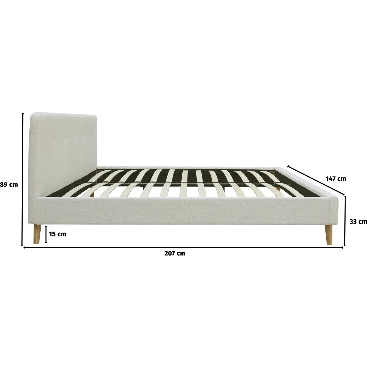 Descriptif : Lit en laine bouclée pour 2 personnes Némo - Crème - Dimensions lit : 147 x 207 x 89 - Dimensions matelas : 140 x 190 cm - Tête de lit capitonnée - Sommier inclus - Finition bouclettes.