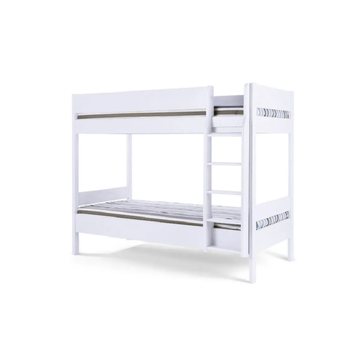 Lit superposé - Bois massif - Échelle intégrée - Blanc