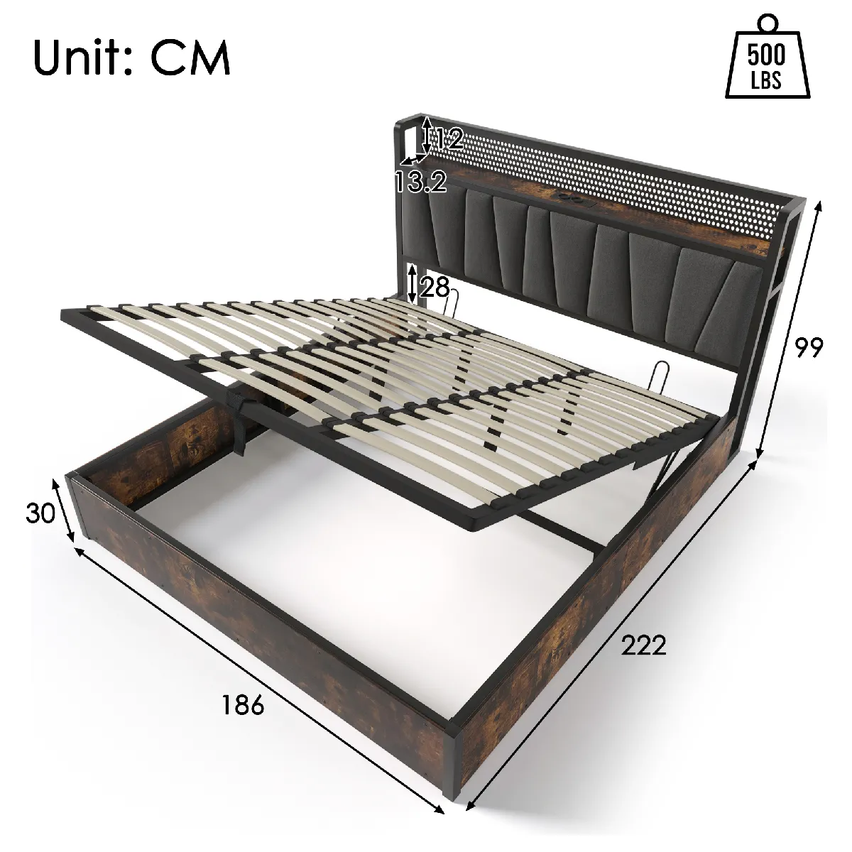 Conception de stockage:le téléphone ou la tablette peut être stocké sur une étagère. En soutenant les ressorts à gaz, l'espace sous le lit peut être utilisé pour stocker de gros objets.