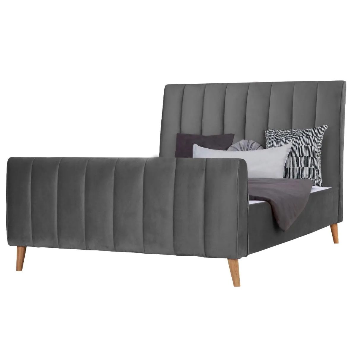 Lit avec sommier à lattes - Tissu en velours - Design élégant - Sans matelas