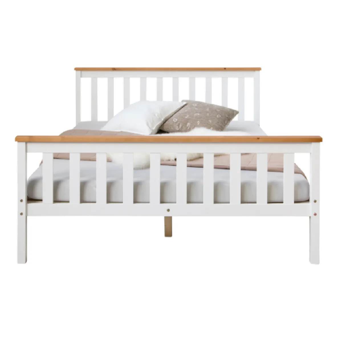 Notre lit en bois inspire avant tout par sa beauté naturelle, son design intemporel et sa finition stable. Que ce soit dans la chambre à coucher, dans la chambre des jeunes ou dans la chambre d'amis, le lit s'intègre parfaitement dans chaque chambre grâce à son design discret. Le lit avec la tête de lit est en pin massif peint en blanc. Le sommier est assorti d'un sommier à lattes gratuit. Le matelas et la literie ne sont pas inclus. détails. Lit double élégant au design naturel. La section tête et pied impressionne par ses lignes droites. espace de couchage confortable. exécution stable par pieds massifs. bords et poteaux arrondis. avec sommier à lattes. facile à assembler. un sommier à lattes séparé peut également être utilisé.
