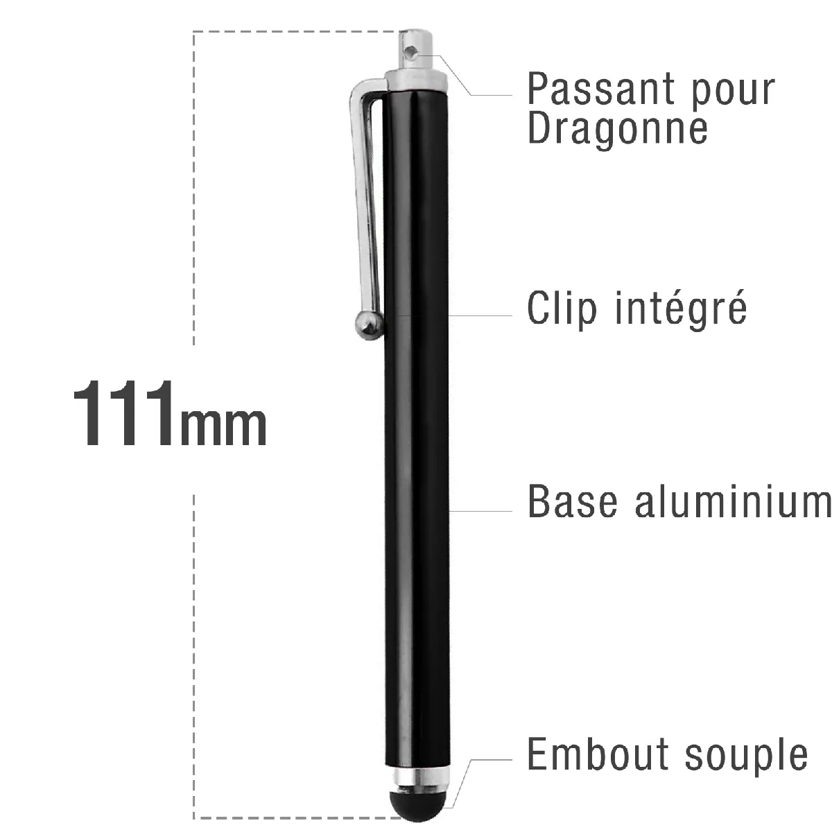 Stylet pour ecran tactile avec embout en silicone incline de 40°. Gagnez en securite et en precision tout en evitant de rayuer et de salir votre ecran lors de son utilisation. Son clip permet de faciliter son transport.