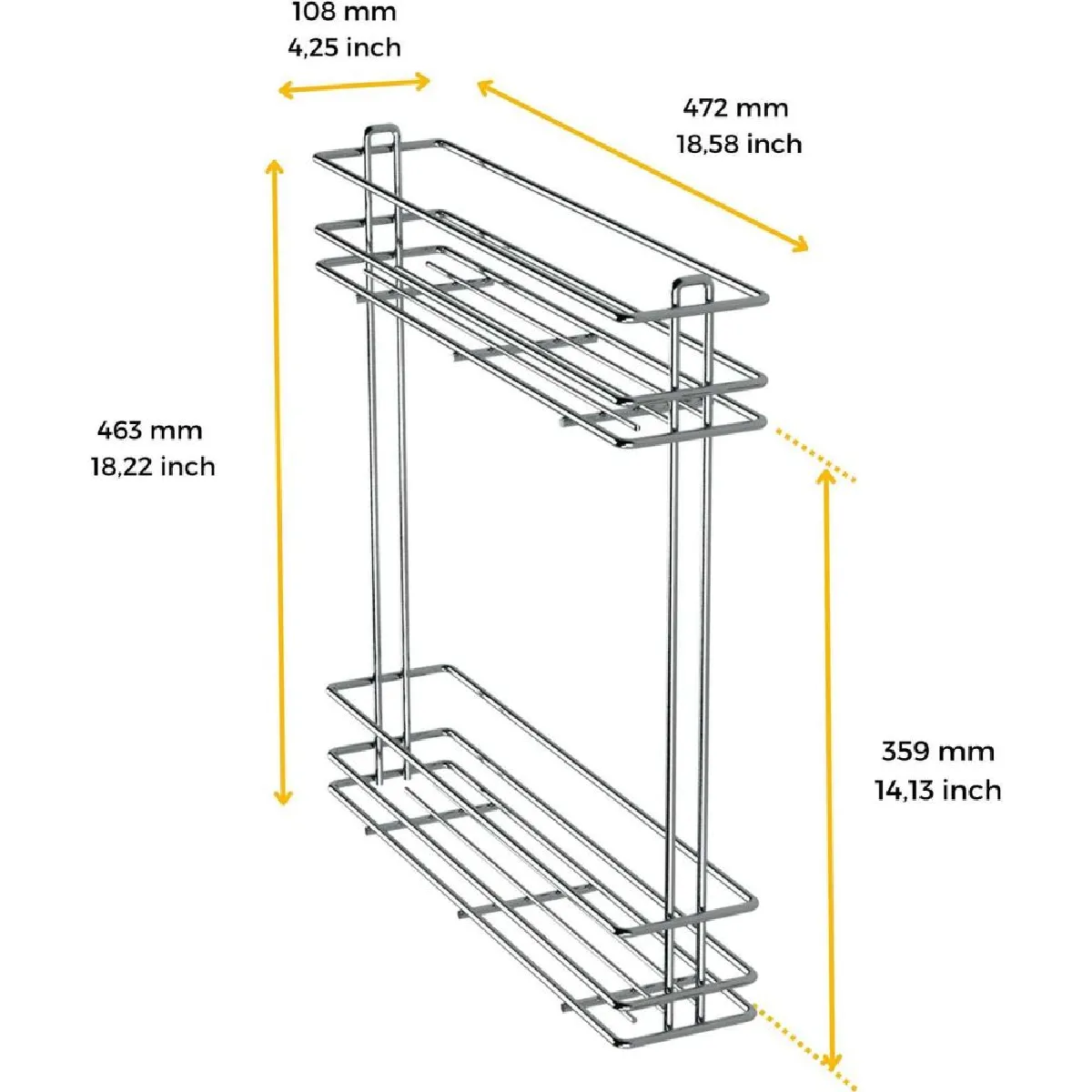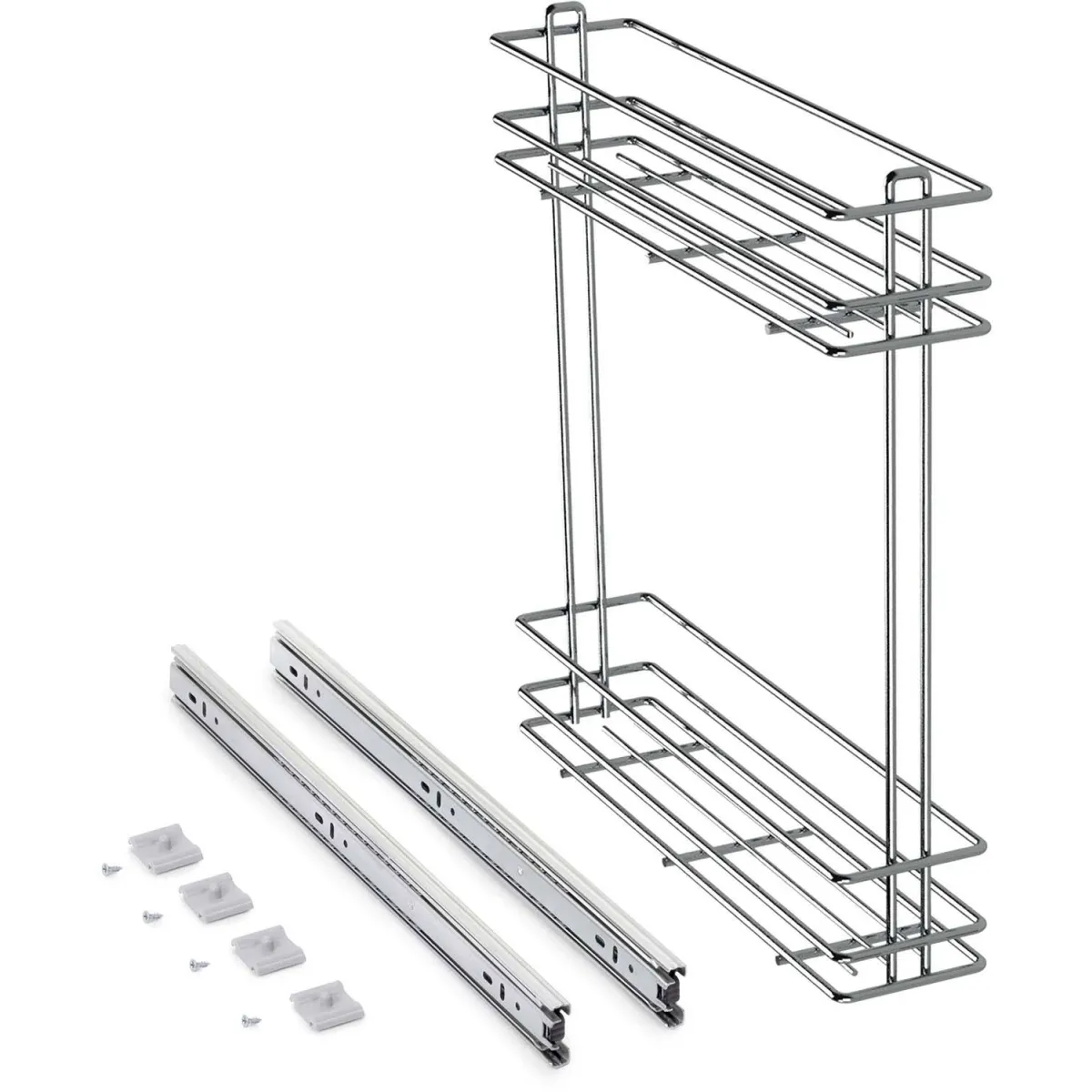 Ce porte-bouteilles extractible optimise l'espace avec une structure en acier chromé robuste et facile d'entretien. Conçu pour une installation dans une niche étroite, il s'intègre dans des meubles d'une largeur intérieure minimale de 11.2 cm et profondeur minimale de 47.4 cm. Les 2 glissières à roulement à billes offrent une extraction partielle fluide pour visualiser et saisir les bouteilles sans déplacer le contenu voisin. La capacité de charge jusqu'à 15 kg convient aux bouteilles et accessoires courants, tout en conservant une bonne stabilité à l'ouverture.