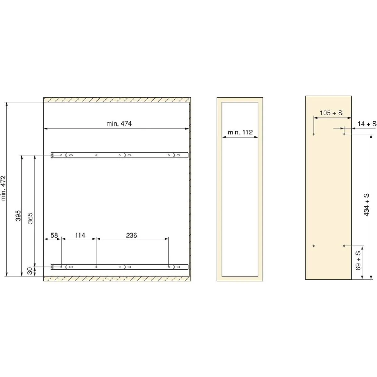 Le montage se fait sur le côté gauche, avec réglages précis de la porte sur 3 axes : +/- 2.5 mm latéralement, +/- 2.25 mm en profondeur et jusqu'à 13 mm en hauteur. Compatible avec panneaux de 16, 18 et 19 mm, il s'adapte aux modules de cuisine ou celliers. Les dimensions de 51,50 cm de hauteur, 46 cm de longueur et 11,50 cm de profondeur permettent d'exploiter une colonne étroite, tout en maintenant un coulissement stable sous charge. Le poids de 3,80 kg assure une bonne rigidité de l'ensemble.