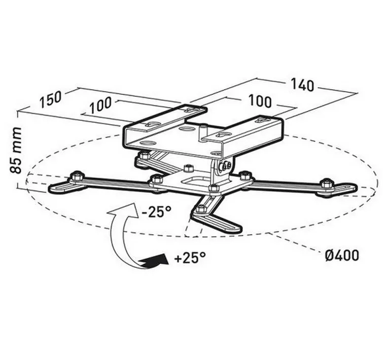 Support plafond pour vidéoprojecteur - Rotation 360° - Inclinaison ±25° - Fixation métal - Platine rotative - Visserie incluse
