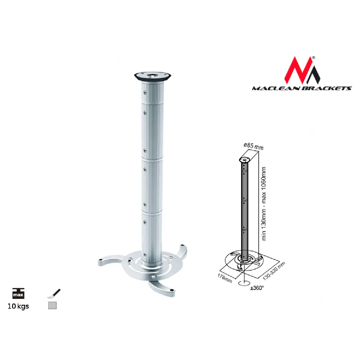 Maclean support plafond vidéoprojecteur MC-517 S - Argent |