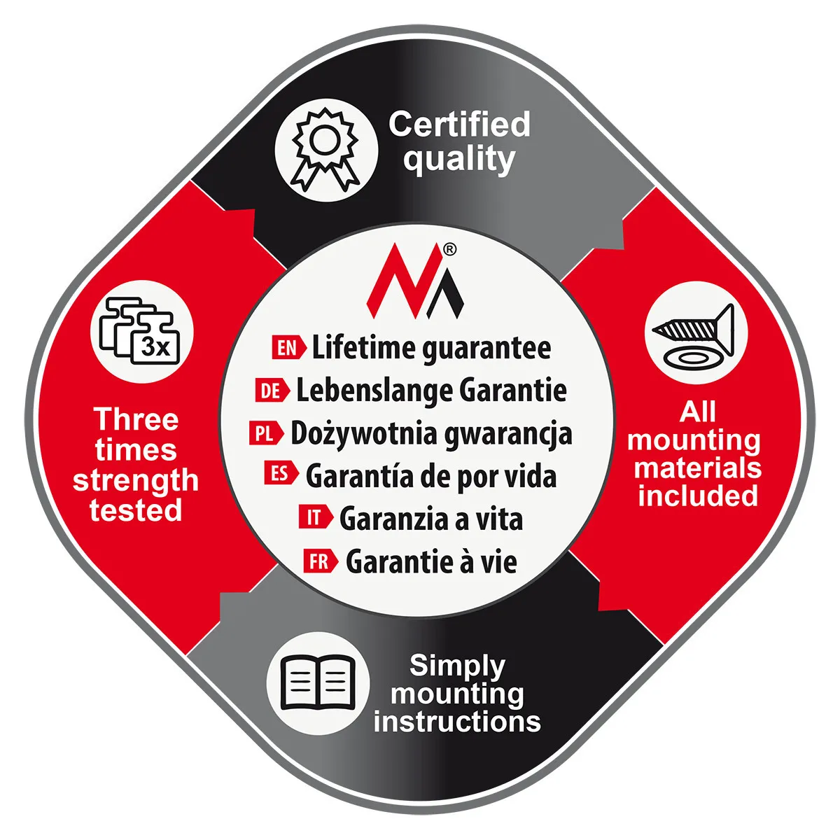 - Matériel de montage inclus; couleur : argent
