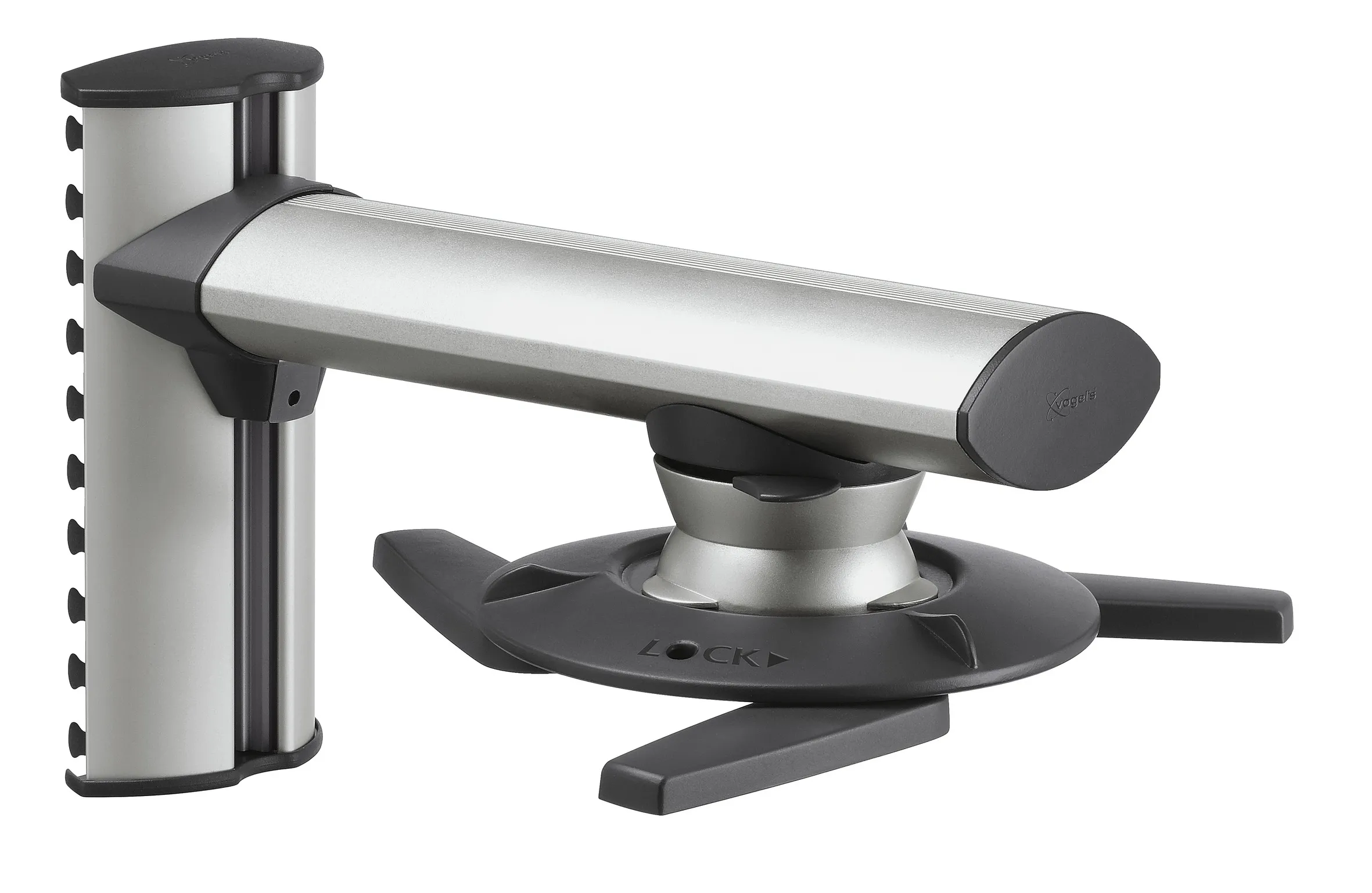 La mise en place d'un vidéoprojecteur au mur gagne en précision grâce à un bras horizontal ajustable et verrouillable qui facilite le positionnement. Ce support mural en métal de couleur argent, compatible jusqu'à 10 kg, offre une interface universelle pour une large variété de projecteurs. Le système permet de régler l'appareil, de le verrouiller puis de conserver un alignement stable. Avec la gestion discrète des câbles intégrée, l'installation reste propre et ordonnée le long du mur. La compatibilité avec le système Fixer Changer de Vogel's contribue à une mise en place structurée et évolutive, adaptée aux besoins d'une salle de réunion, d'une salle de classe ou d'un espace domestique.