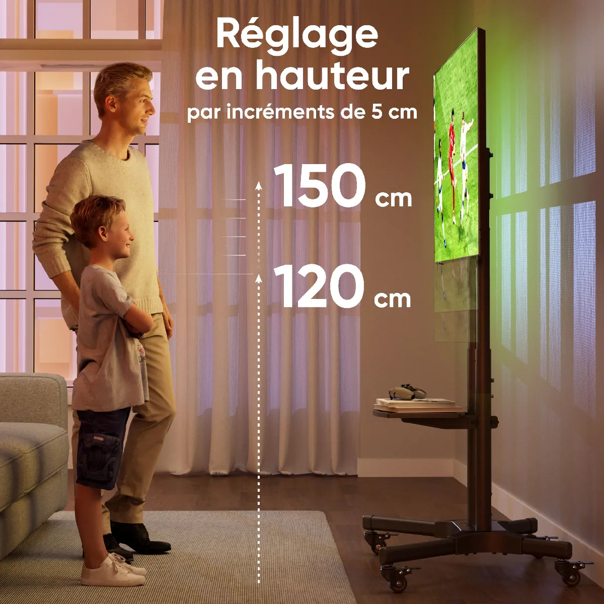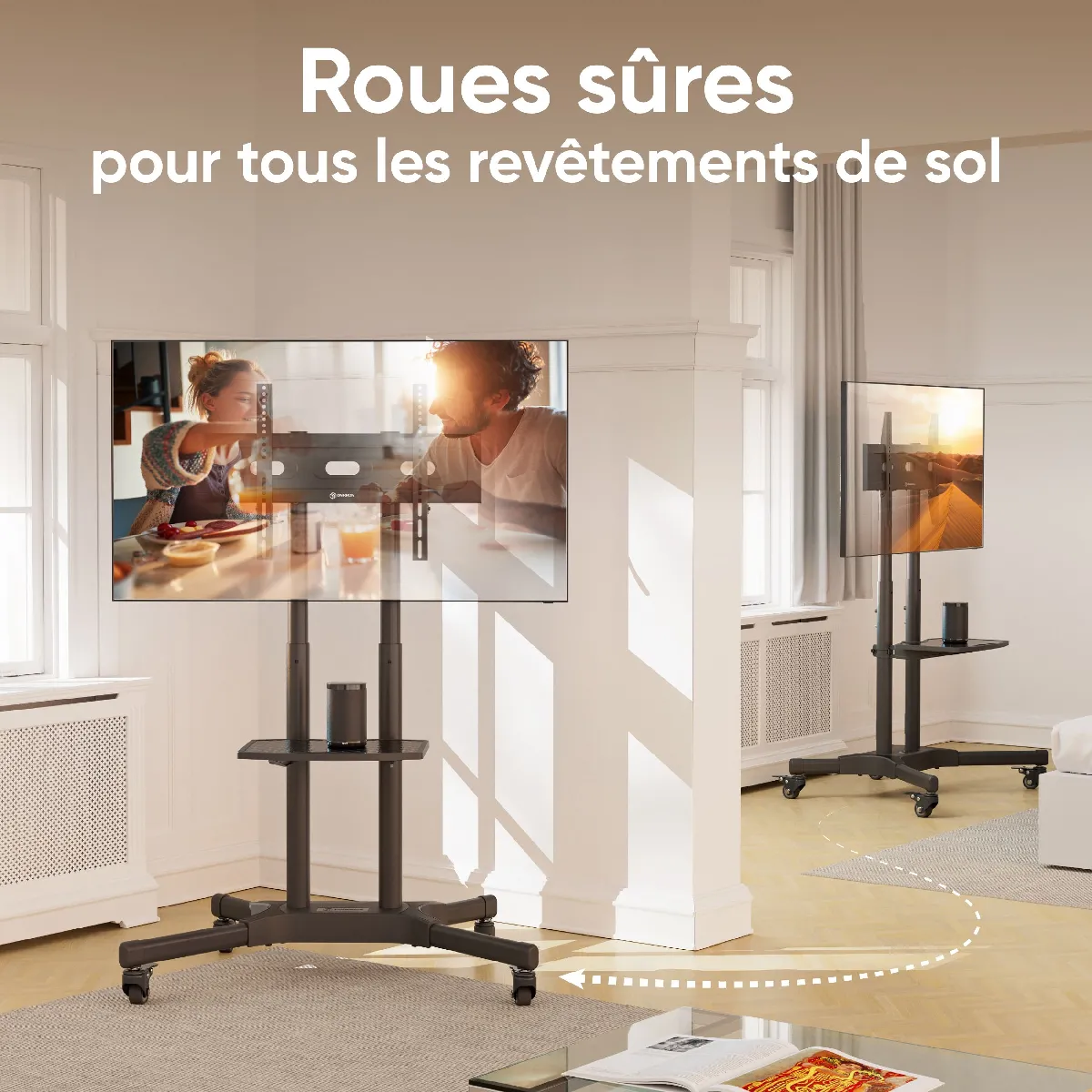 SUPPORT ECRAN MOBILE | Support a roulettes pour deplacer meubles libère de l'espace utile dans votre maison, qui était autrefois occupé par des meubles TV volumineux | Pied television sur roulette permet de déplacer facilement le tele entre les pièces si nécessaire, pour cela le support pied TV sur roulette sera très pratique dans les petits espaces