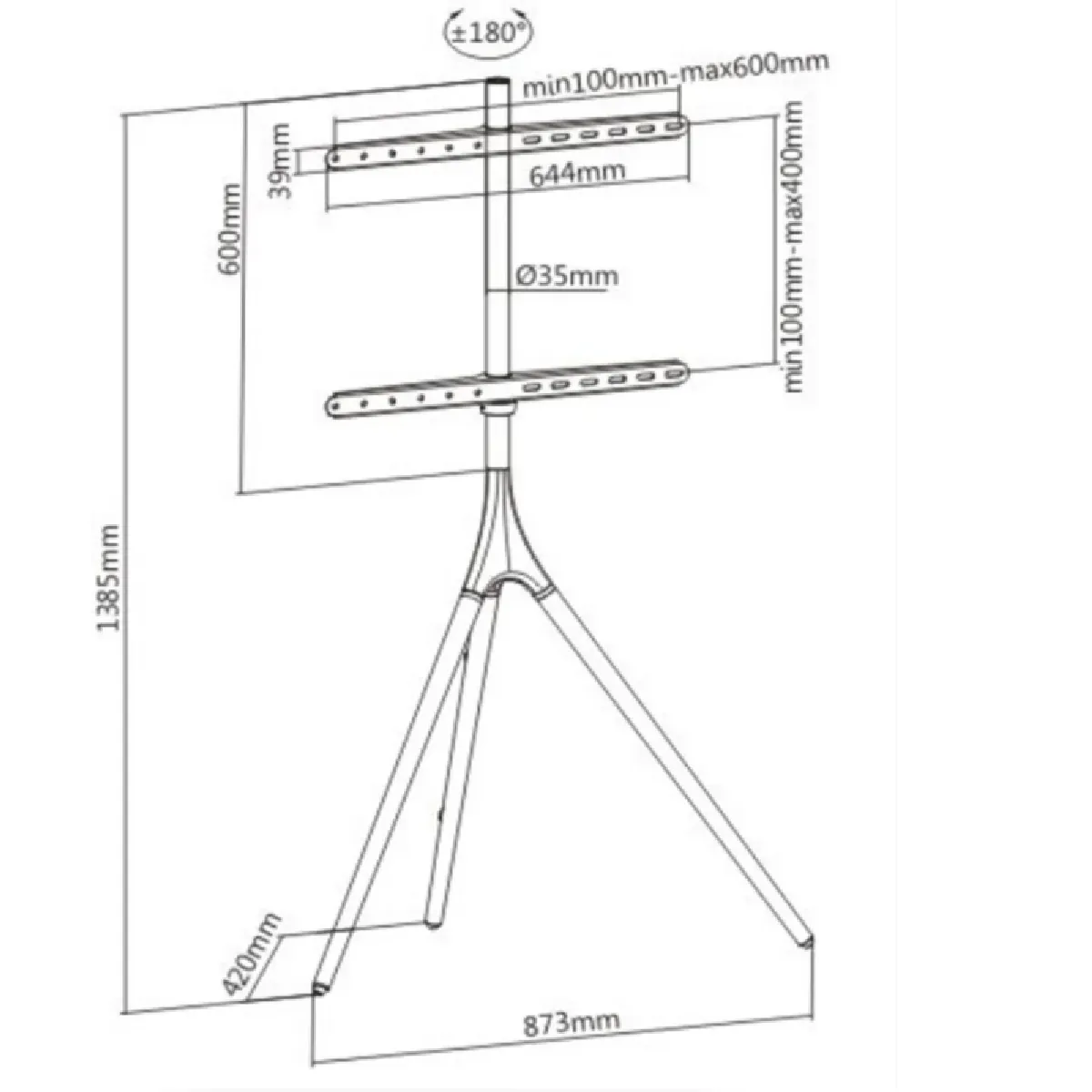 Support chevalet - Taille écran 42" à 70" - Charge max 32 kg - Noir/Boi