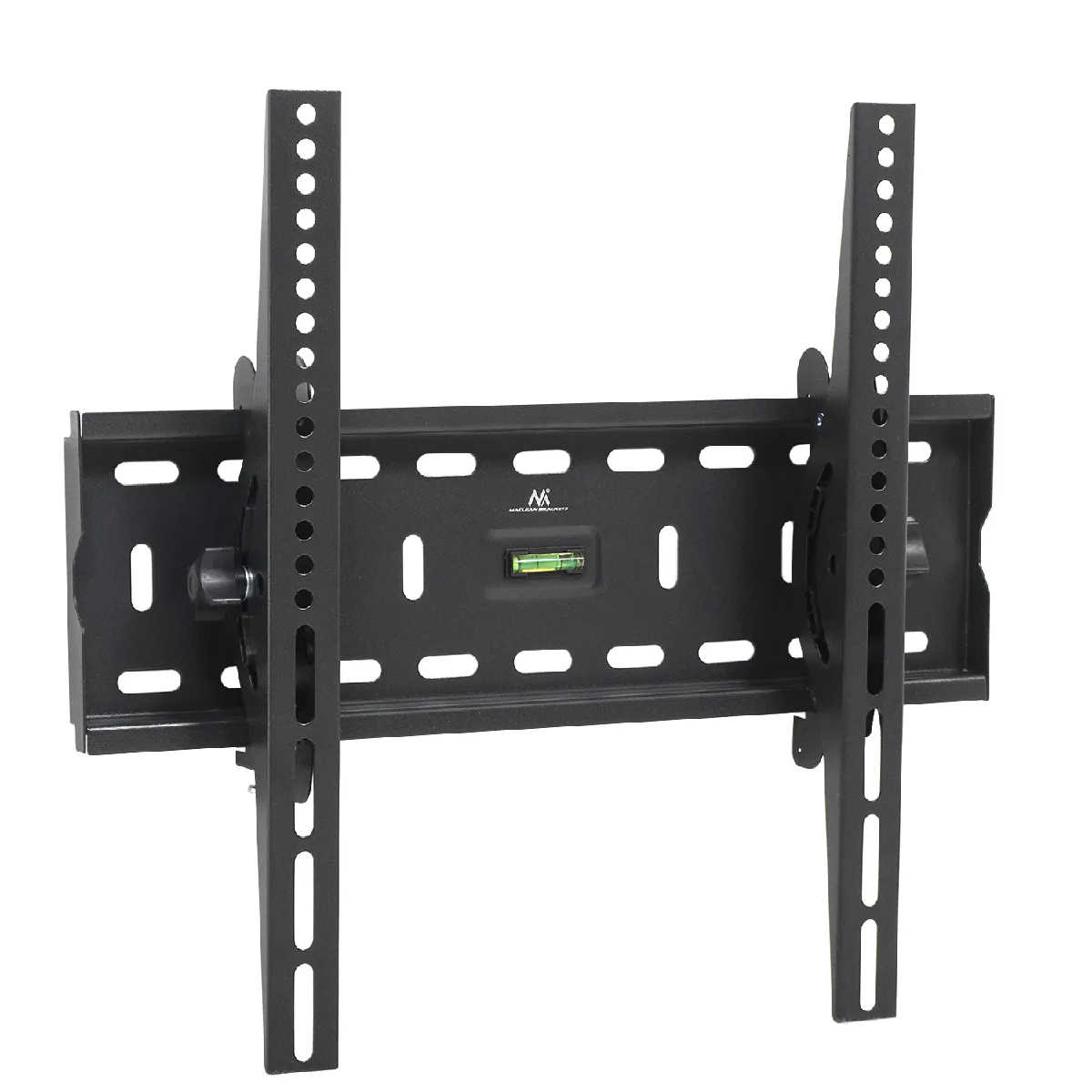 Conception universelle Le support mural universel est utilisé pour le montage des téléviseurs LCD, LED et PLASMA ainsi que de moniteurs de différentes marques avec un poids maximal de 45 kg et avec une diagonale de l'écran de 26 à 65". Compatible avec LED, LCD, téléviseurs PLASMA: Sony, LG, Samsung, Philips, Sharp, Panasonic, Toshiba, Grundig, Pioneer, JVC, BenQ, Sanyo, NEC, Hyundai, Hitachi. Compatibilité VESA La taille d'écran donnée est juste une suggestion. Un téléviseur plus grand peut être monté sur le support quand il ne dépasse pas le poids maximum et est dans la norme VESA donnée. On peut facilement attacher l'écran VESA au support: 75x75, 100x100, 200x200, 400x400. Un ensemble complet Comprend un ensemble de vis pour le montage du support mural et du téléviseur sur le support. - Charge maximale: 45 kg - Espacement horizontal minimum / maximum: 75/400 mm - Espacement vertical minimum / maximum: 75/400 mm - Inclinaison réglable de + 15 ° à -15 ° - Solide, construction métallique, assemblage très facile - Haute qualité de fabrication - Revêtement en poudre - Niveau à bulle intégré pour un montage facile - Destiné aux téléviseurs de 26 à 65" (ou plus grand si leur poids n'excède pas 45 kg, et la norme VESA est compatible avec le support) - Comprend un ensemble de vis de montage pour le mur et pour la fixation du téléviseur