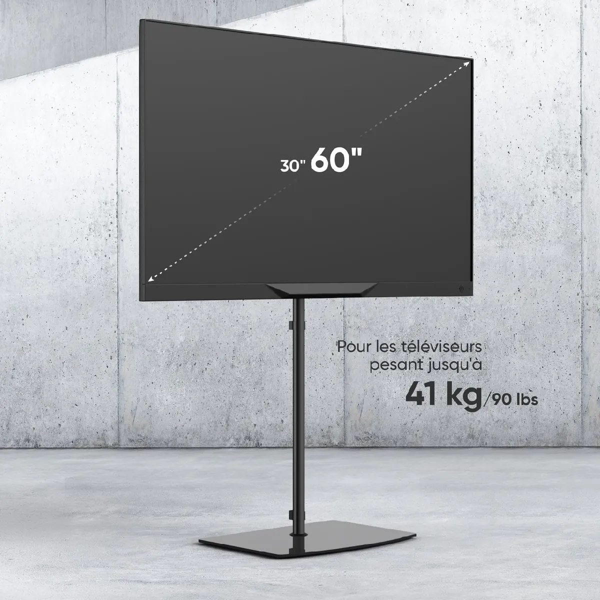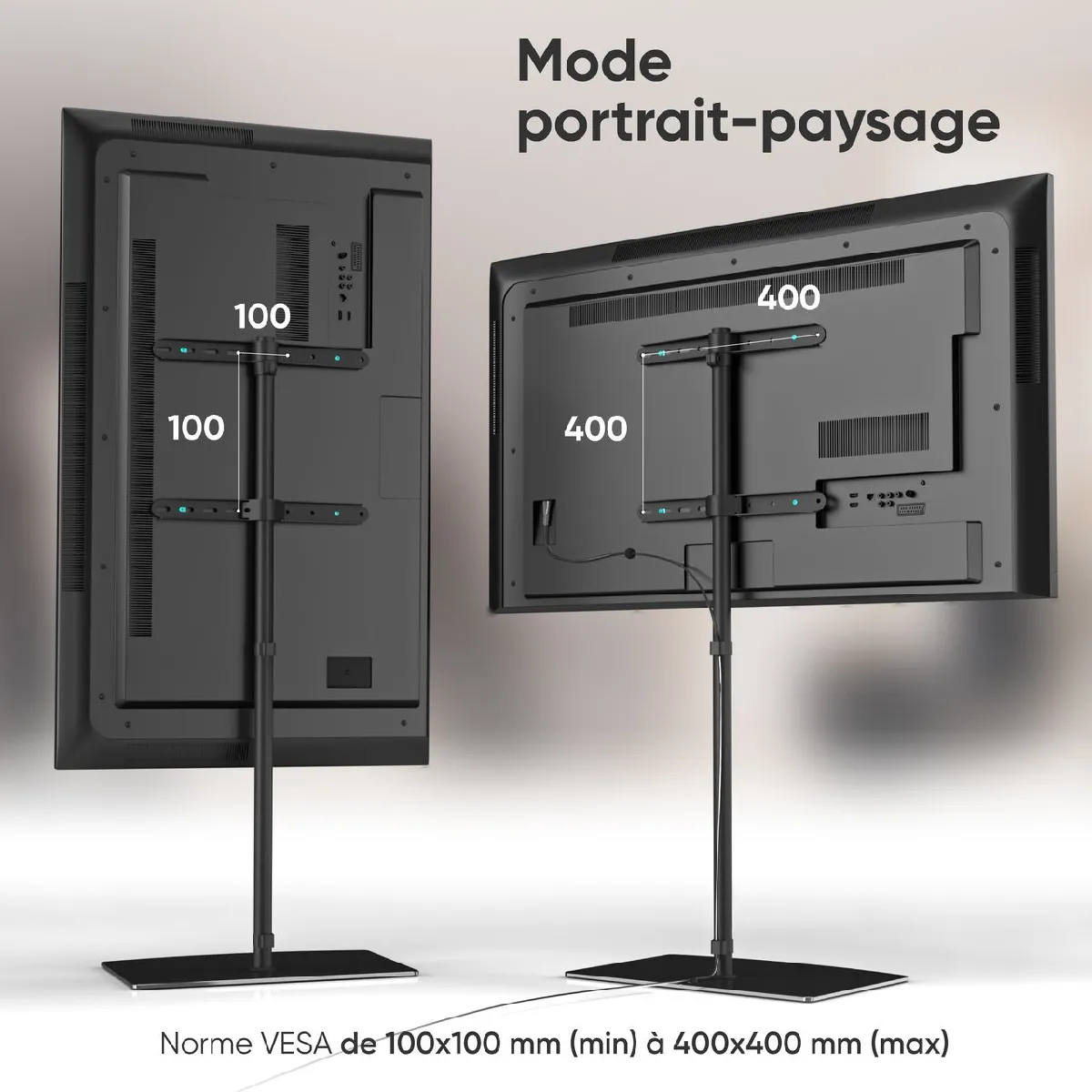 Support TV sur pied - Pour écrans 30 à 60 pouces - VESA 100x100 à 400x400 - Poids 41 kg - Hauteur réglable