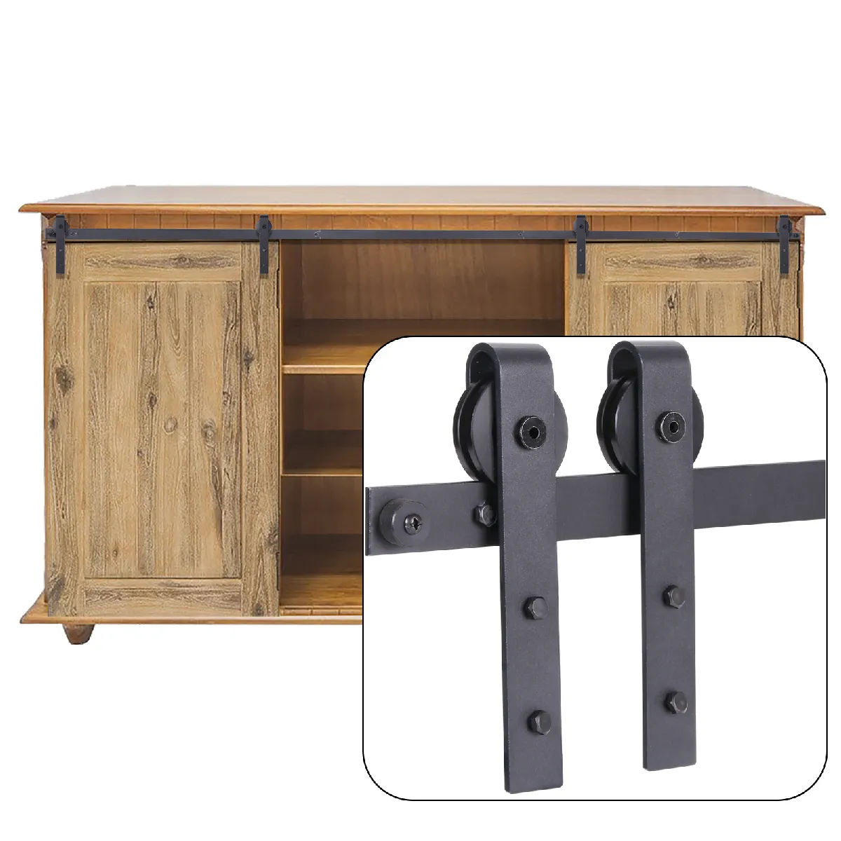 Le kit inclut les accessoires nécessaires au montage des portes coulissantes, ce qui facilite une installation méthodique avec composants compatibles. L'absence d'habillage de rail permet d'intégrer la quincaillerie telle quelle ou de prévoir un cache séparé selon le projet. Le format de 183 cm s'adapte aux usages courants d'armoire ou de meuble TV, tandis que la structure en acier garantit stabilité et guidage constant pour un usage quotidien en intérieur.