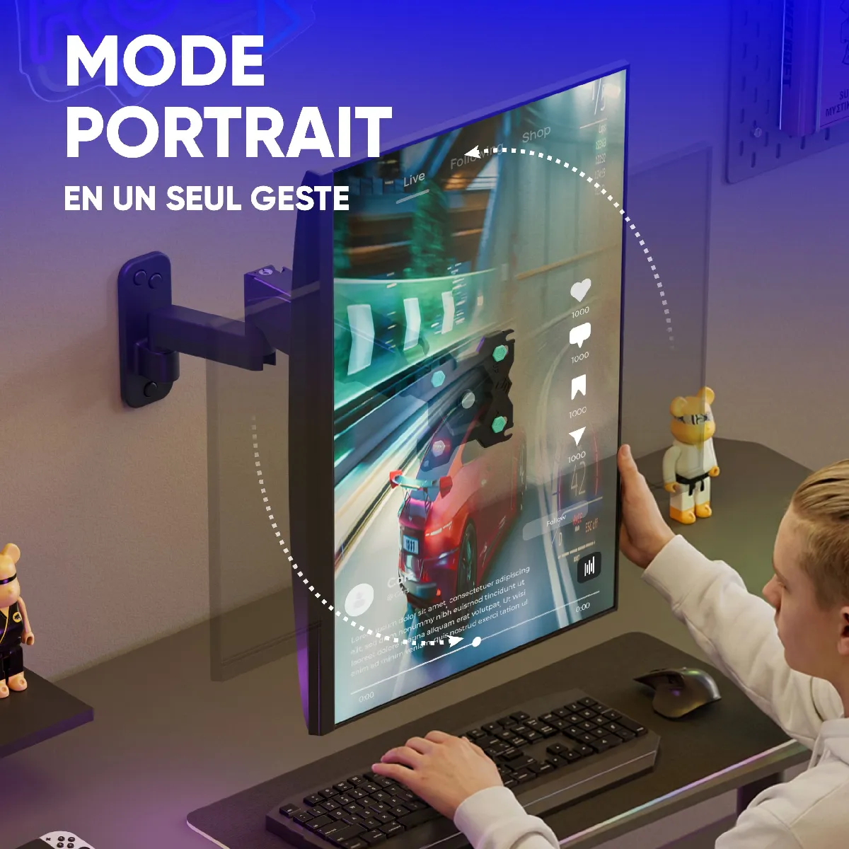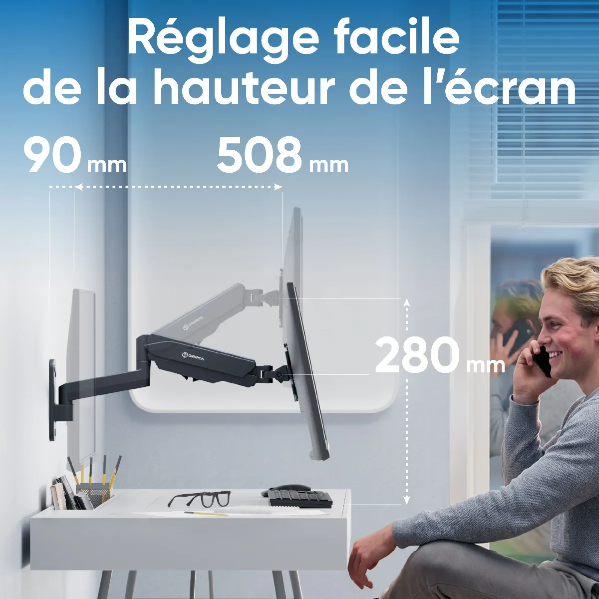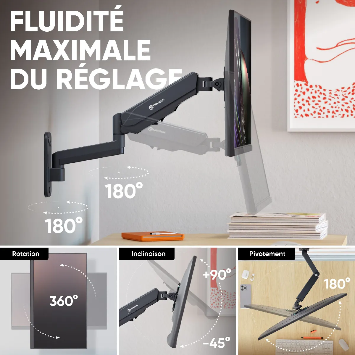 FIXATION MURALE ECRAN PC | Bras articulé pour écran bien positionné gardera votre posture & vision | Support écran mural aidera à concentrer sur le travail ou détendre l'après