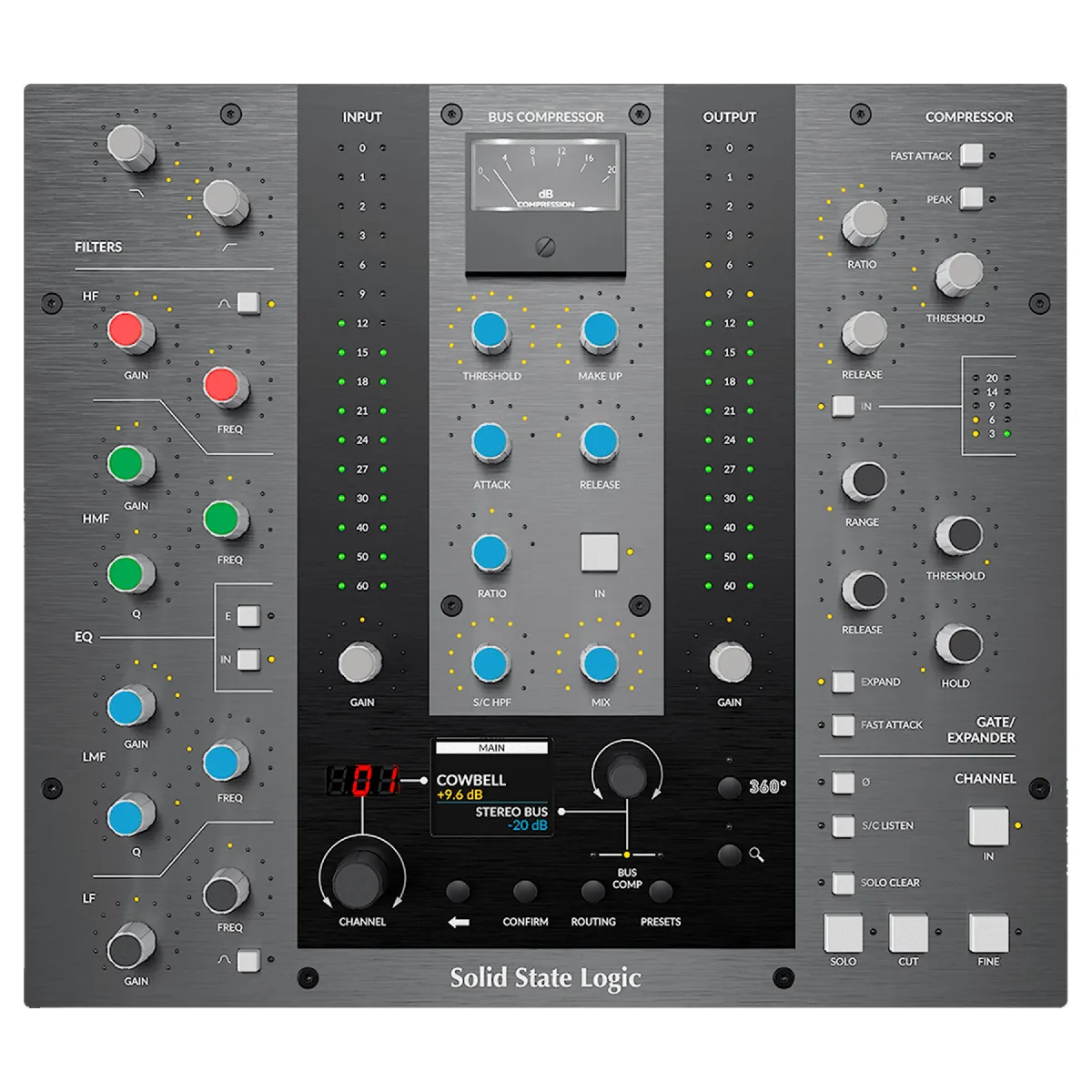 - Ergonomie inspirée des consoles SSL afin de fluidifier le workflow de mixage dans la DAW