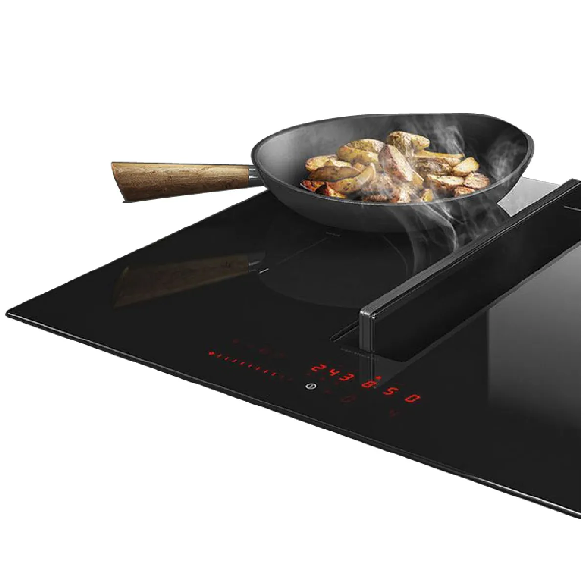 Table de cuisson induction aspirante - 4 foyers - zone modulable - commandes frontales sensitives - hotte intégrée - fonction Stop & Go - sécurité enfant - vitrocéramique - autocapture - mode extraction