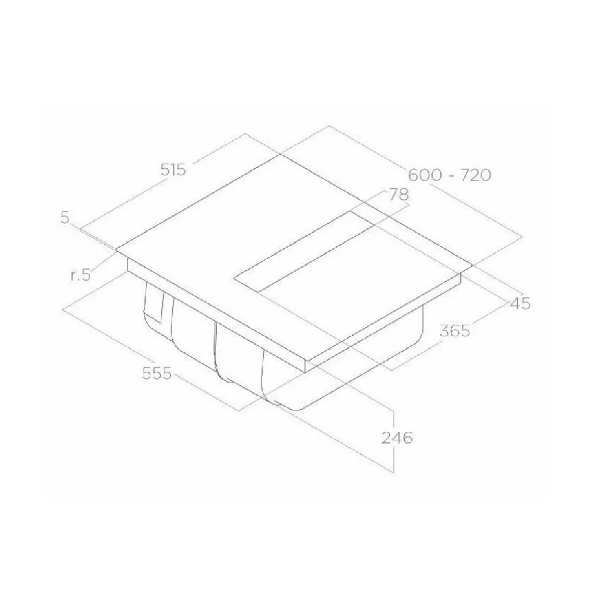- Encastrement H x L x P : 24.6 x 56 x 49 cm