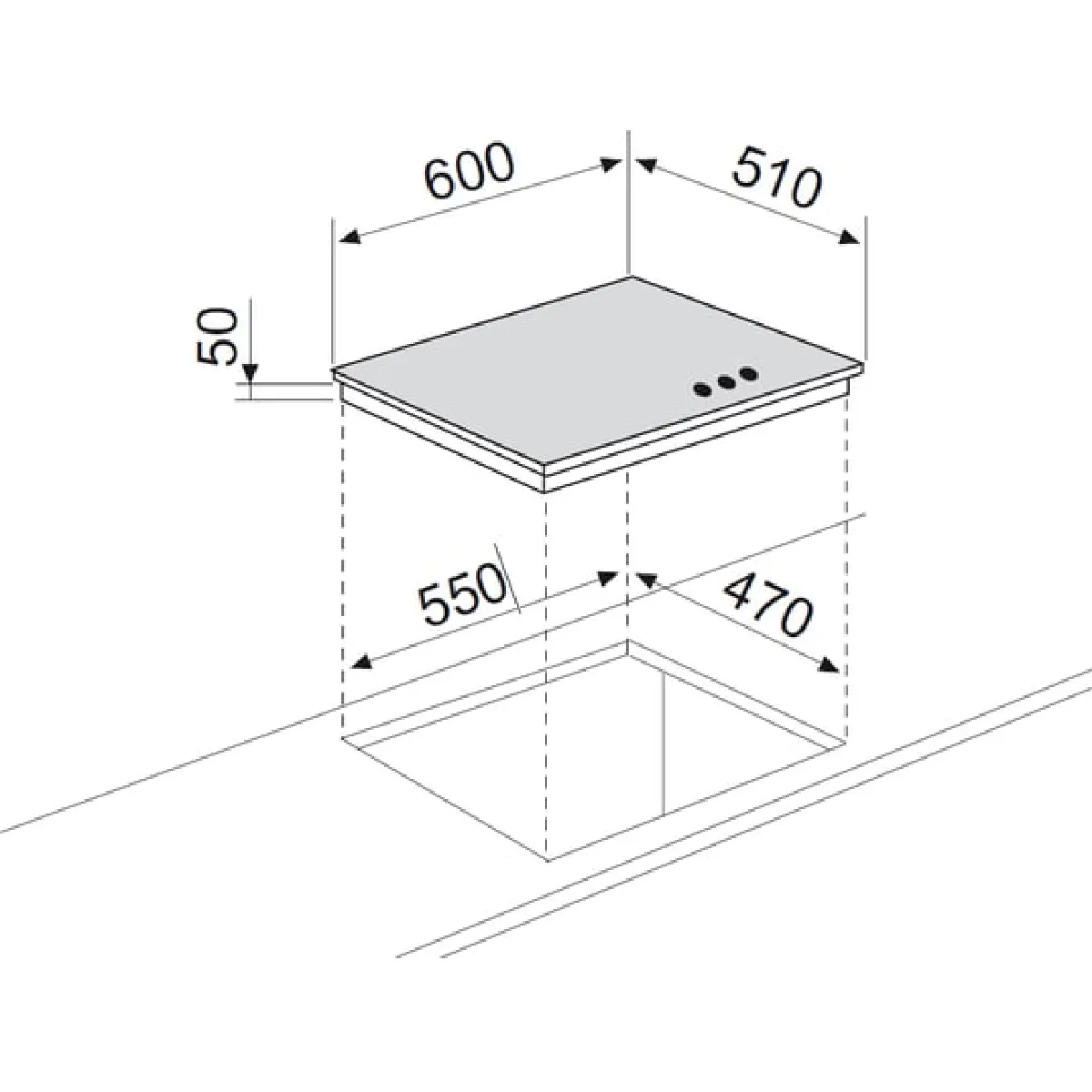- Encastrement requis : 55 x 47 x 5 cm (L x P x H)