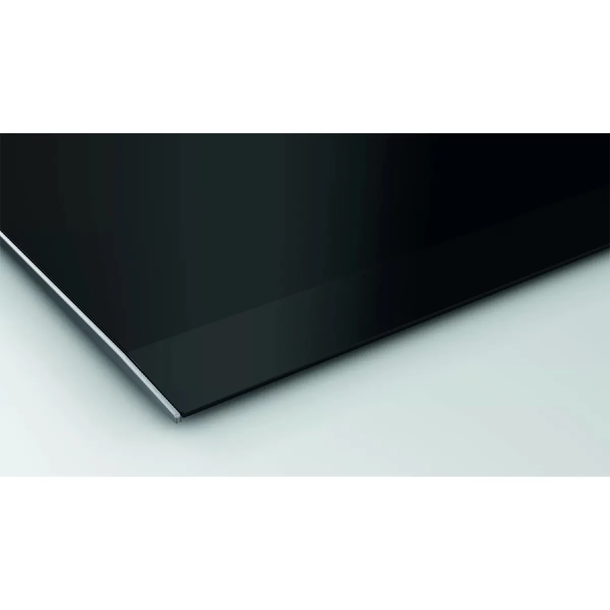 La surface vitrocéramique à induction propose 4 foyers modulables avec flexInduction : les inducteurs détectent automatiquement la taille et la position des récipients, et peuvent être réunis en grand rectangle pour accueillir poissonnière ou grande cocotte. Le fryingSensor avec 5 niveaux stabilise la température de la poêle, limitant les surchauffes et assurant une cuisson régulière sans surveillance constante. Les fonctions QuickStart et ReStart accélèrent la mise en route et mémorisent les réglages en cas d'arrêt involontaire. Chaque foyer dispose d'un timer, de 17 positions de réglage, du powerBoost et du panBoost pour des montées en température rapides.