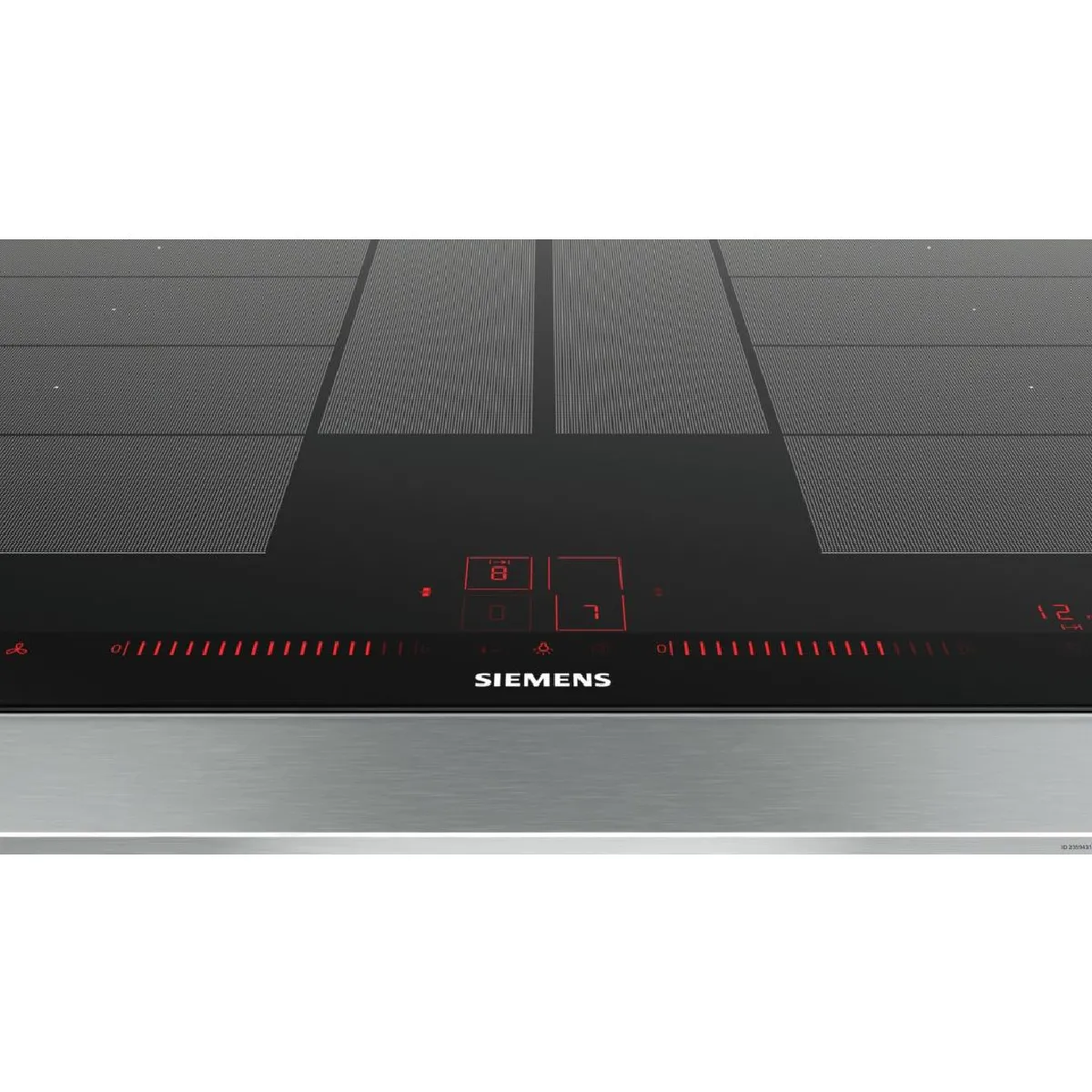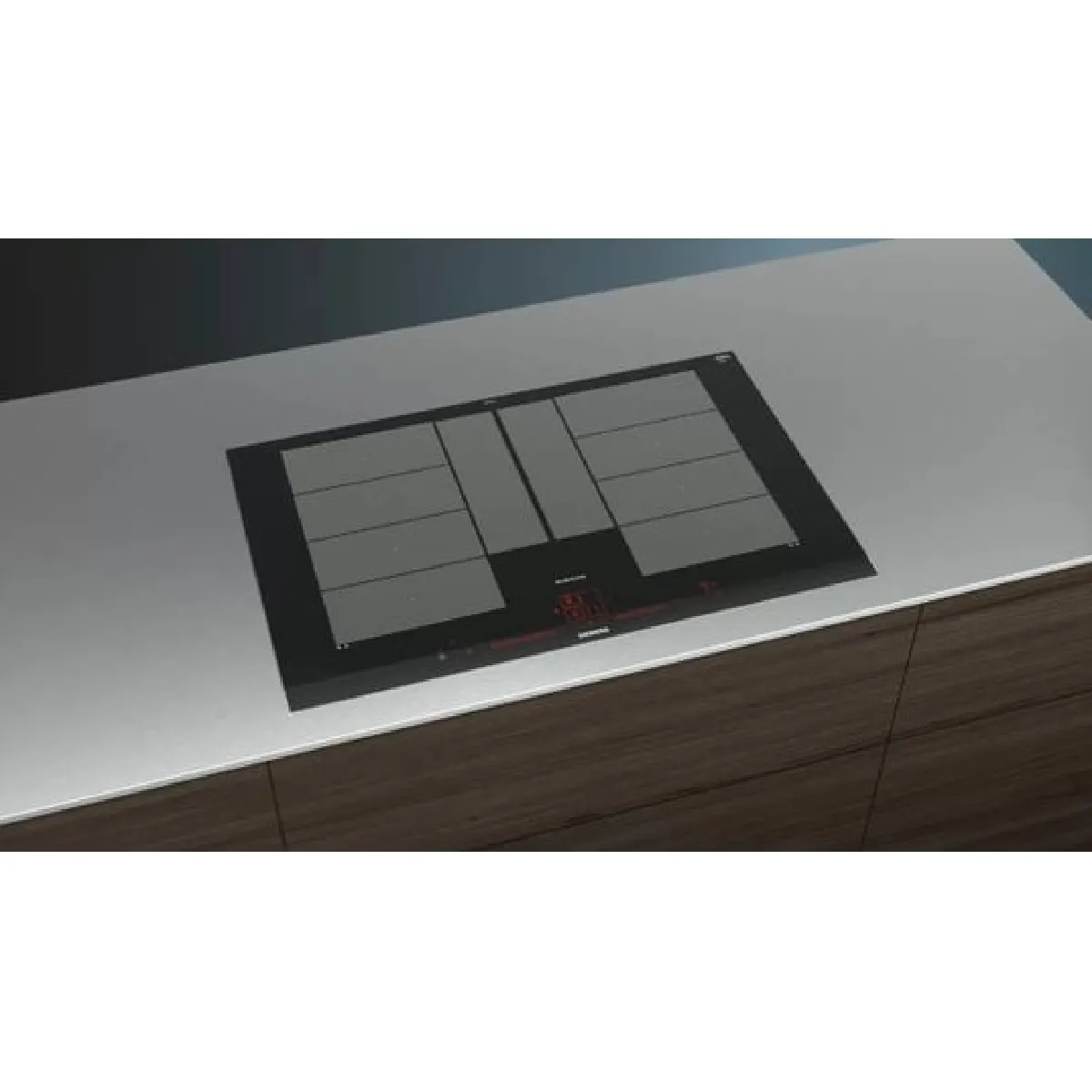 La surface en vitrocéramique de 80 cm offre une zone modulable qui adapte la chauffe au format des casseroles, idéal pour des ustensiles variés jusqu'à 30 cm de diamètre. Avec ses 4 foyers et une puissance totale de 7 400 W, la cuisson gagne en réactivité et en contrôle. Les commandes frontales à slider permettent des réglages précis sur 17 niveaux, tandis que les 4 minuteurs et les 4 boosters apportent une gestion efficace des temps et des montées en température. La connectivité intégrée avec Home Connect simplifie le suivi à distance et l'intégration CookConnect avec la hotte compatible centralise les fonctions essentielles.