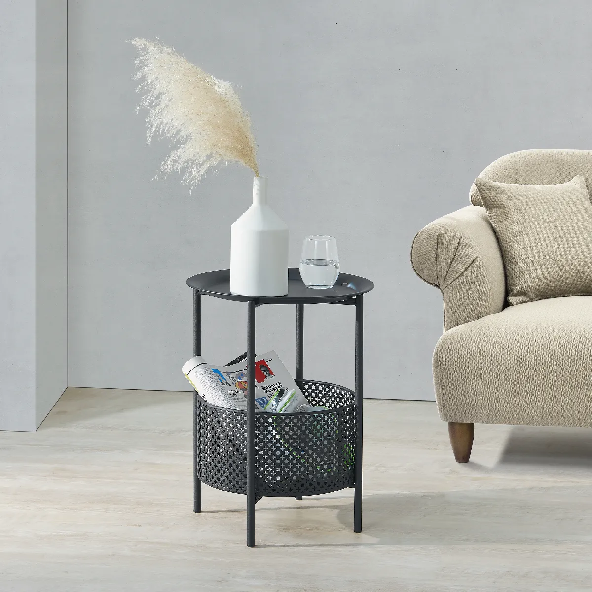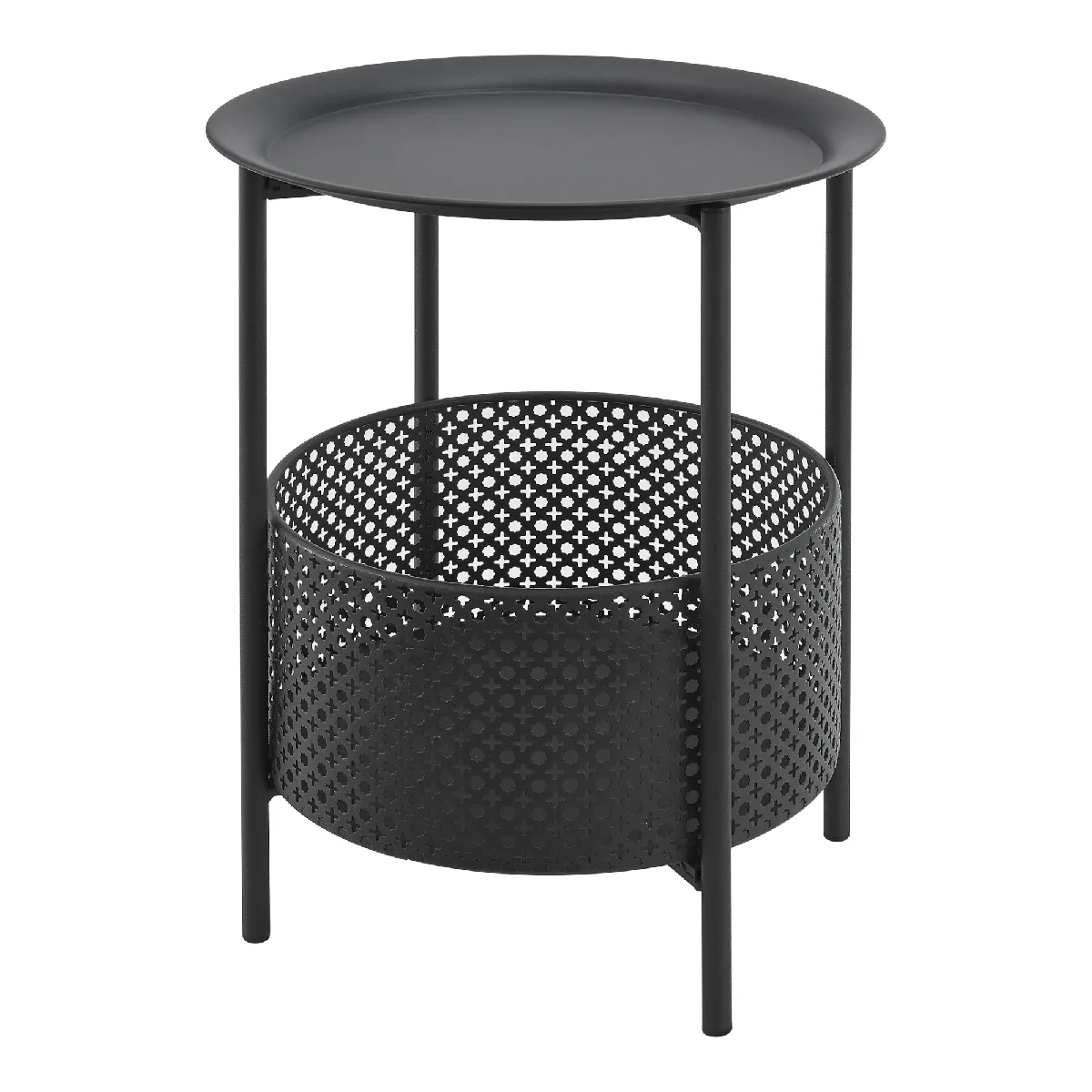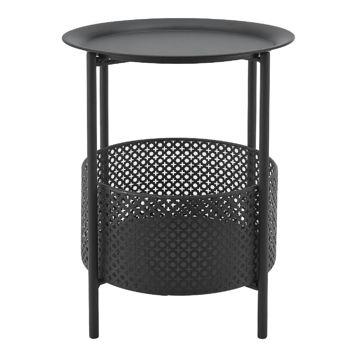 Table d'appoint ronde en métal noir avec panier de rangement intégré
