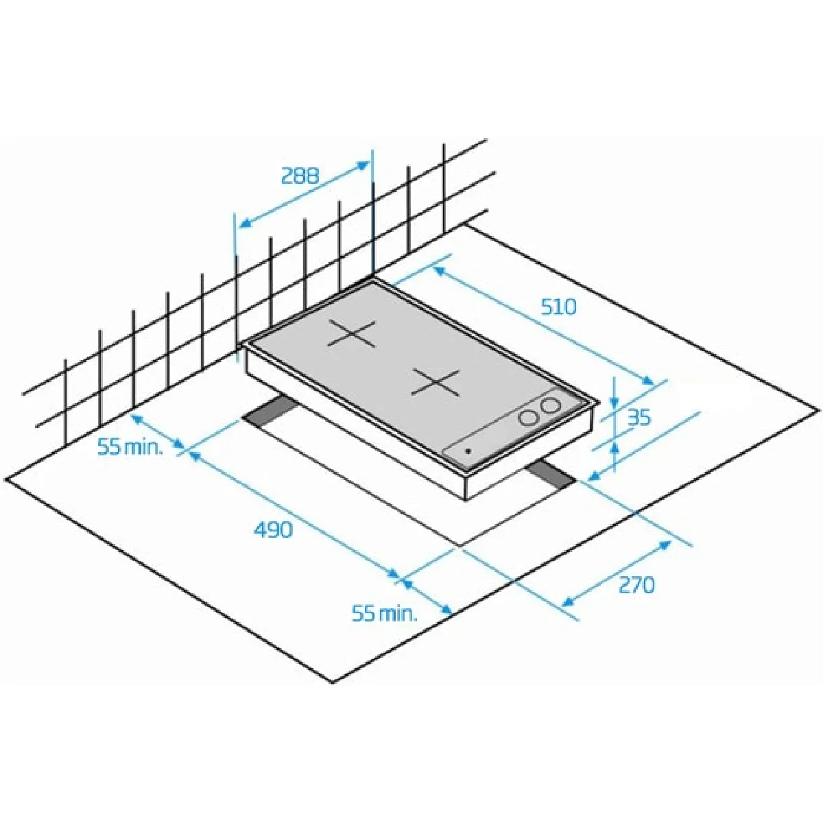 - Dimensions (L x P x H) : 28,8 x 51 x 7,5 cm ; Encastrable 27 x 49 cm