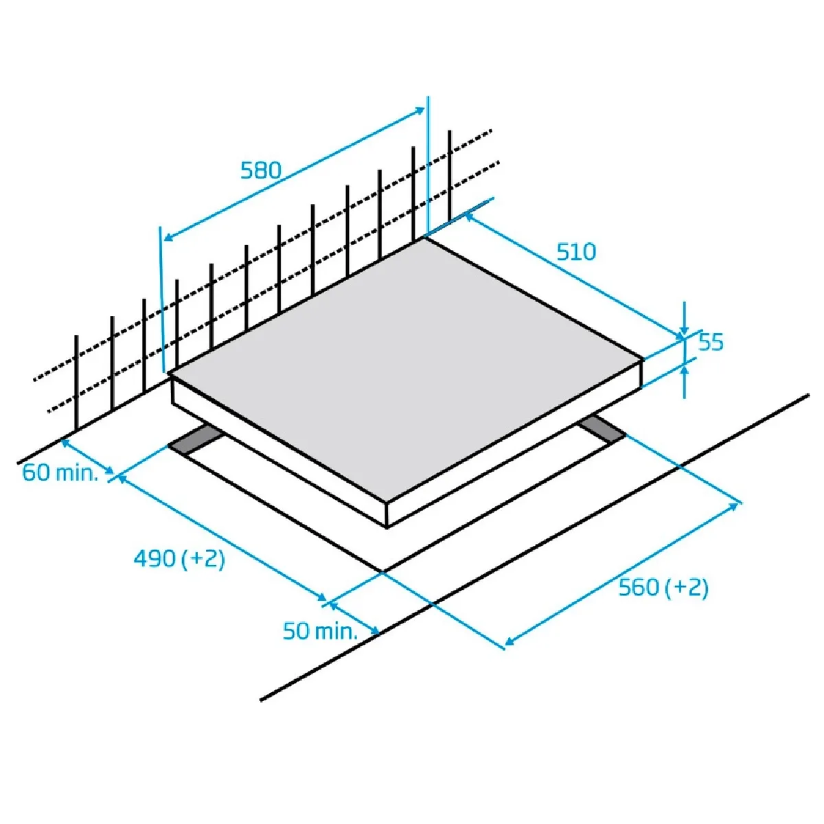 - Largeur : 58 cm (encastrement 56 x 49 cm)