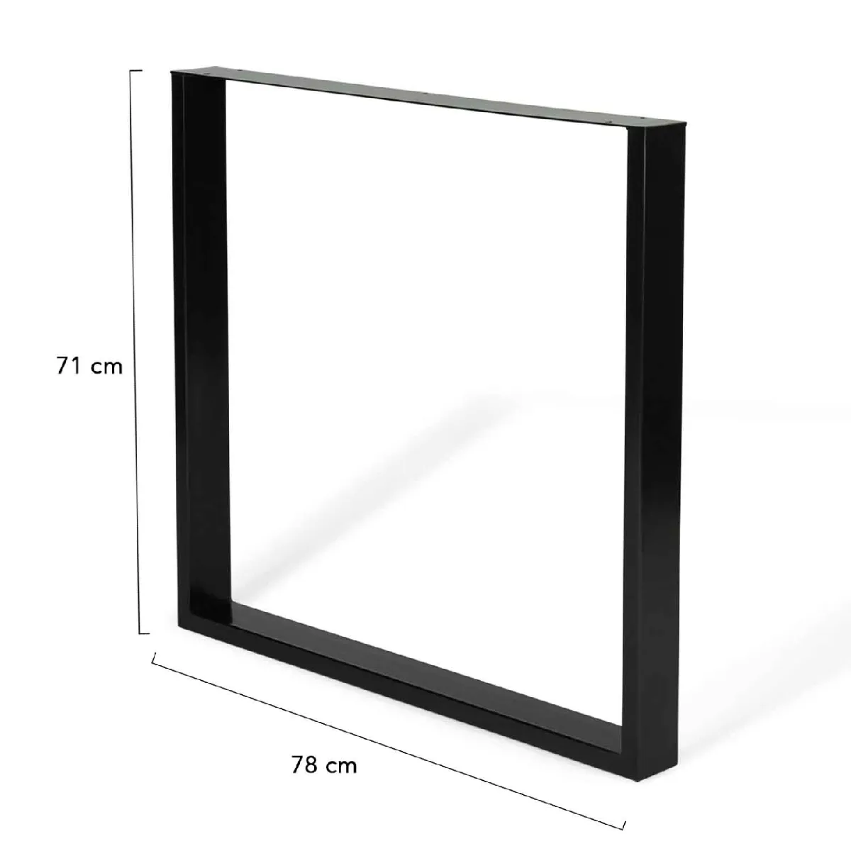 Laissez libre cours à votre créativité et fabriquez vous-même vos propres meubles tendances !Grâce à ce lot de 2 pieds de table carrés en métal noir mat ultra robuste Hauteur 71 cm, customisez et réinventez vos vieux meubles. Ce set de 2 pieds apportera une nouvelle vie à votre table à manger avec un design industriel moderne ultra-tendance.Faites de votre meuble un objet unique et personnalisé ! C'est désormais facile de fabriquer votre propre table de salle à manger ou votre bureau. Leur design carré leur confère stabilité et robustesse. Chaque pied supporte jusqu'à 50 kg environ.Dimensions des pieds de table carrésDimensions générales : Longueur 78 cm x largeur 7,5 cm x Hauteur 71 cmMatériaux : métal Couleur : Noir matRéalisez tous vos projets sur mesure avec nos lots de pieds design industriel