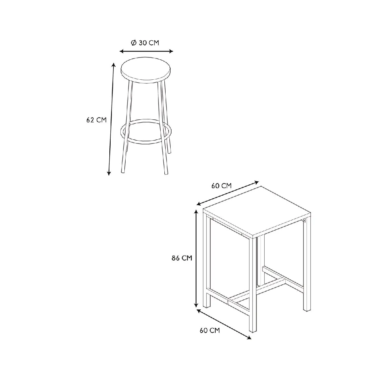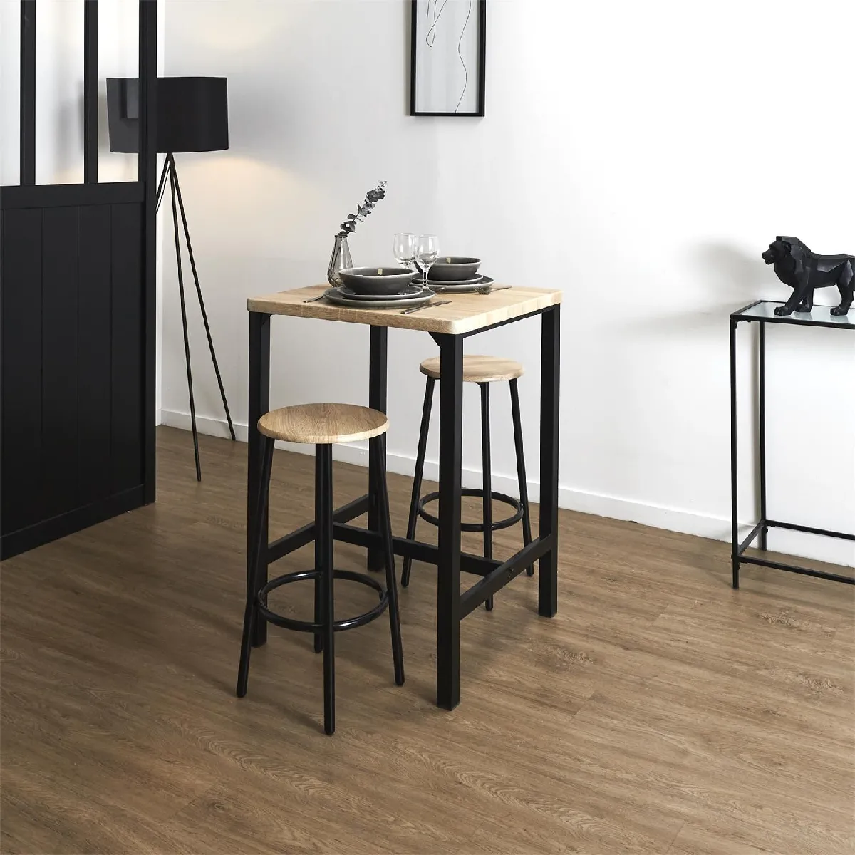 Adapté une touche de style industriel à votre espace avec cette table haute, complétée par deux tabourets assortis. Ces meubles sont idéaux pour instaurer une ambiance chaleureuse, fusionnant habilement le style industriel et la praticité pour une atmosphère contemporaine dans votre intérieur.