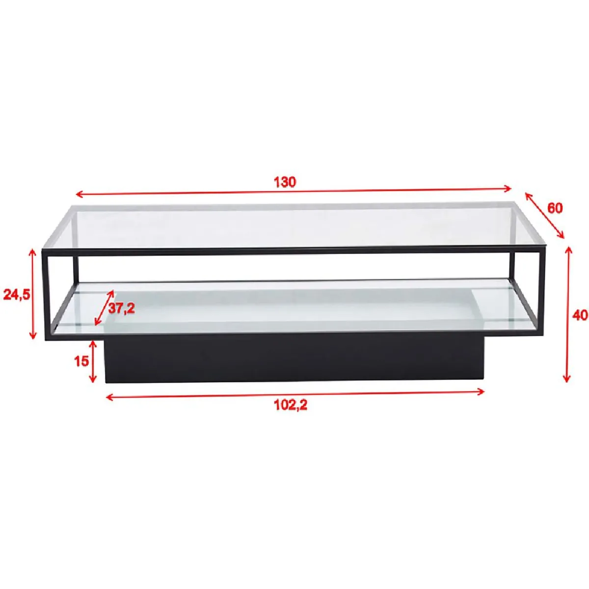 - Type : table basse rectangulaire, coloris noir transparent