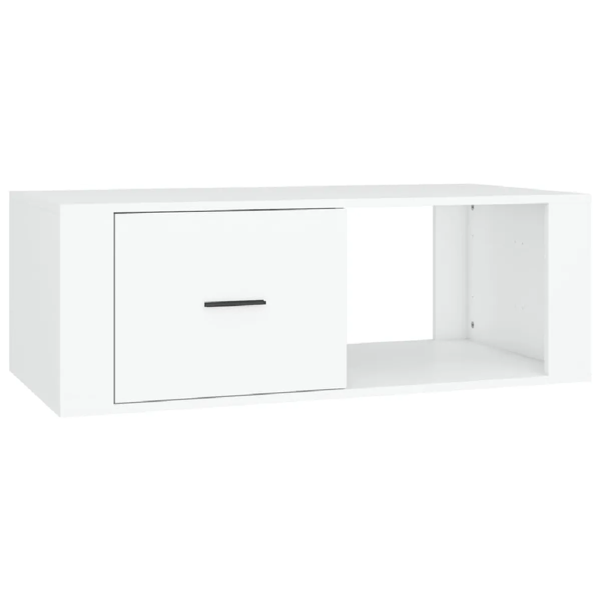 Table basse fonctionnelle - Bois d'ingénierie - Tiroir - Compartiment ouvert - Blanc