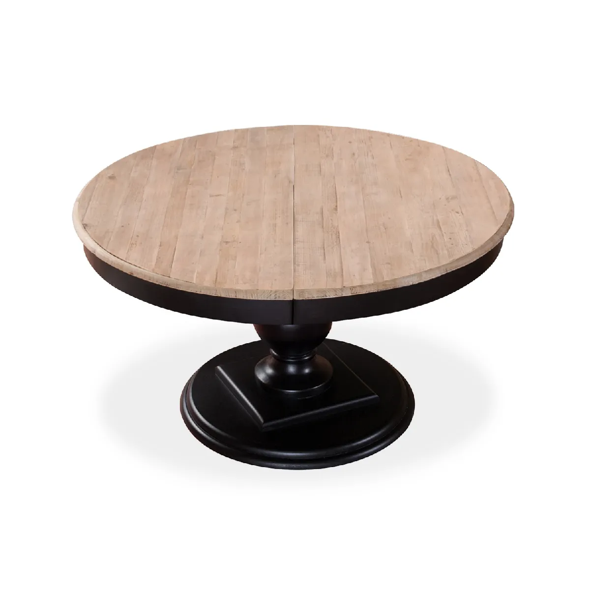- Forme et piétement : Plateau rond avec pied central