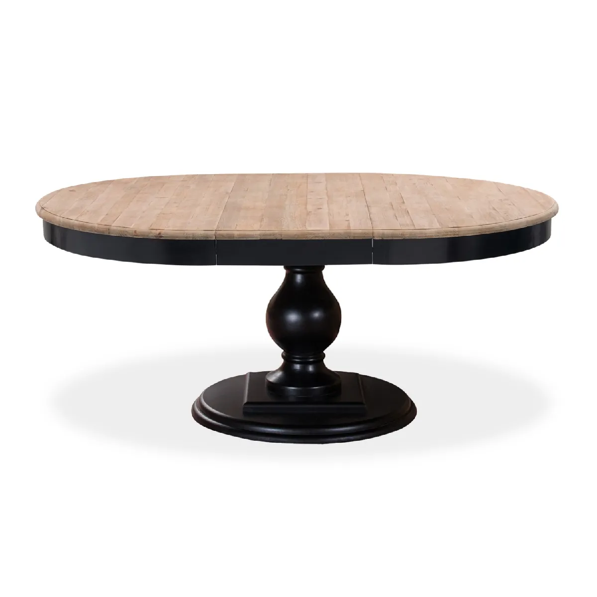 Le plateau extensible facilite l'accueil de convives supplémentaires tout en conservant une surface stable pour les repas. Réalisée en bois massif associant un plateau en pin et une structure en hévéa, cette table privilégie la robustesse et une présence chaleureuse. La forme ronde favorise les échanges et libère l'espace autour des assises. Son pied central noir aux lignes arrondies laisse davantage de place pour les jambes et simplifie l'implantation des chaises. Le style campagne avec une touche raffinée s'intègre facilement dans une salle à manger conviviale. Dimensions utiles : 140 cm de diamètre, extensible à 190 cm de longueur, hauteur 76 cm.