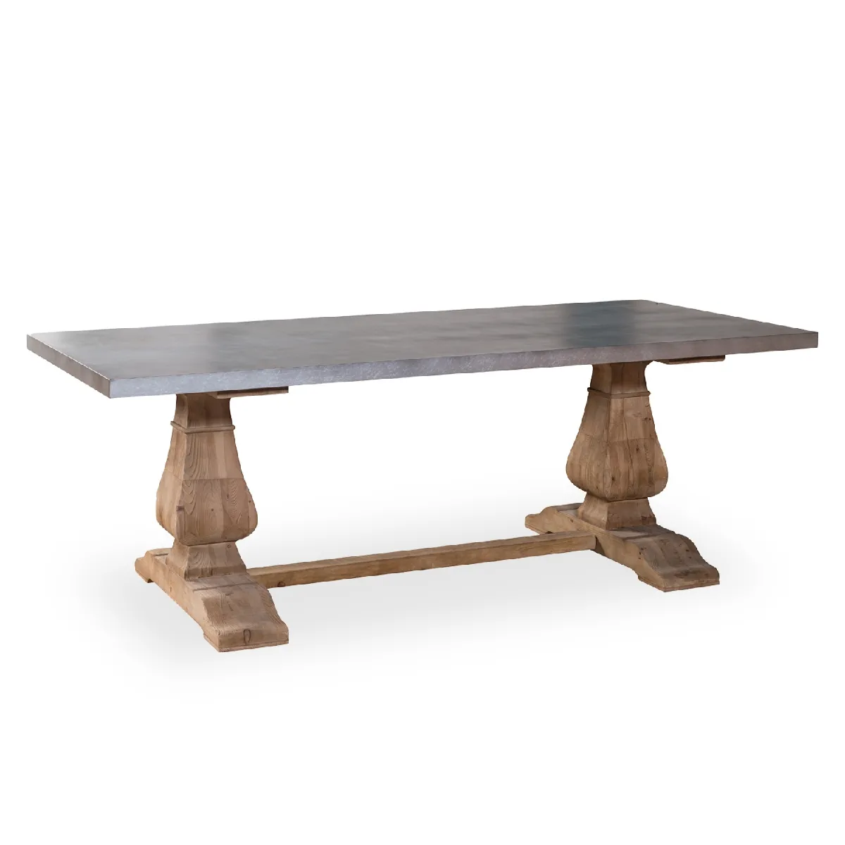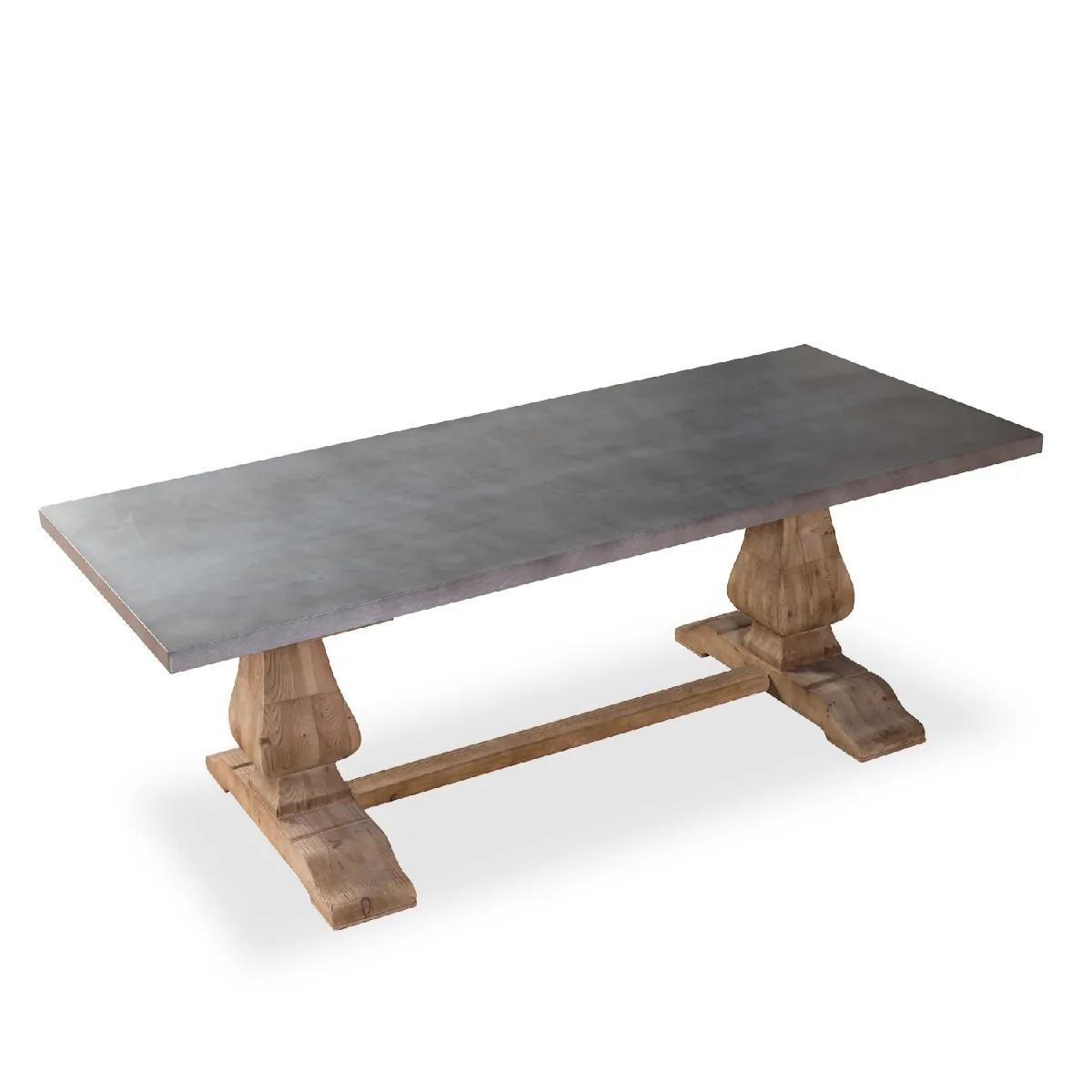Table à manger - Pin vieilli et zinc - Style monastère - Gris