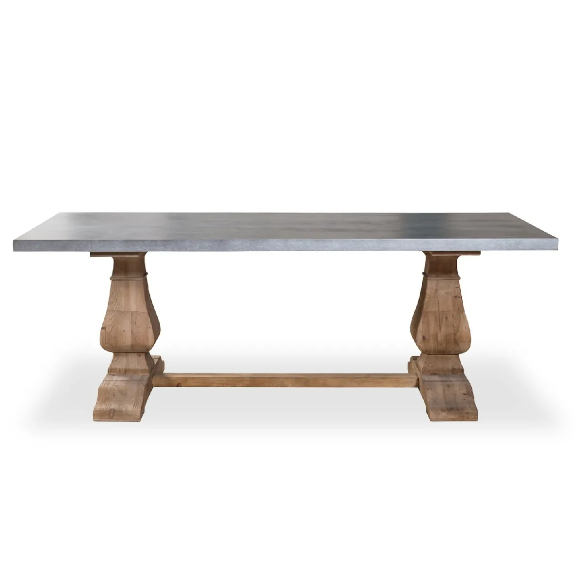 Cette grande table constituée d'une structure en pin vieilli et d'un plateau en zinc peut accueillir jusqu'à 8 personnes. Cette majestueuse table à manger séduira les adeptes des grands repas à plusieurs. La finesse du plateau métallique met en valeur les pieds en bois, qui sont reliés par une barre centrale, comme cela se faisait parfois au moyen âge. La table à manger Lubéron est un meuble original, qui donne un charme d'antan aussi bien à la cuisine qu'à la salle à manger. Sa longueur de 220cm permet d'y associer de belles chaises larges de style médaillon : cela ajoute une certaine prestance à la décoration. L'élégance de la grande table en zinc Lubéron en font un bel objet décoratif à part entière. Certains auront la bonne idée de l'accoler au mur et y regrouper de beaux objets tels que des bougies, des lampes, des plantes ou des livres pour un style accumulation à l'anglaise !
