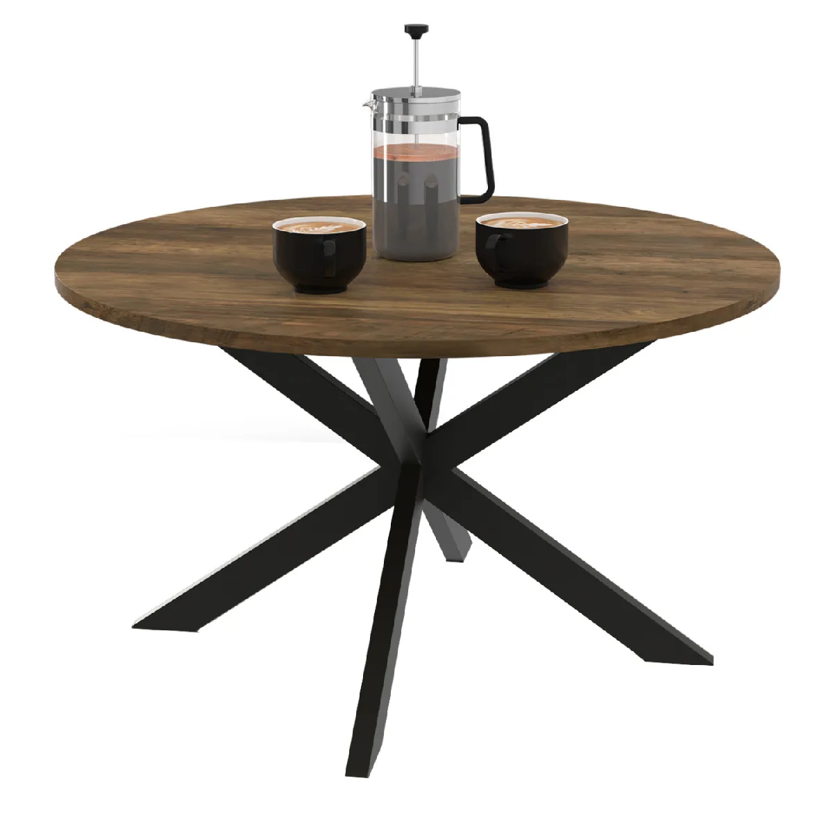 Le design industriel s'invite dans votre salon avec cette table basse ronde HAWKINS 70 cm bicolore !Son plateau au coloris bois effet vieilli et sont pied central métal noir s'associent pour un look factory et un esprit chaleureux qui se marieront parfaitement avec votre décoration intérieure.Elle pourra tout à fait s'intégrer dans votre salon, au centre de la pièce, en bout de canapé, dans votre bureau ou même dans une chambre d'amis !Son plateau rond très pratique de 70 cm de diamètre en MDF est idéal pour profiter d'un apéro convivial en famille ou entre amis. De son côté, son pied araignée en métal noir lui apporte une touche d'originalité et lui assure solidité et stabilité.Au-delà de son côté authentique et robuste, ses proportions compactes en font une table fonctionnelle qui conviendra aux petits comme aux grands espaces de vie. Une taille parfaite pour circuler aisément dans votre pièce ! Optez pour le style industriel vintage et craquez pour la table basse ronde HAWKINS 70 cm !Dimensions de la table basse ronde HAWKINS 70 cm Dimensions globales : Longueur 70 cm x largeur 70 cm x Hauteur 40,5 cmÉpaisseur des pieds : 2 x 4 cmMatériaux : plateau en MDF 1,5 cm et pied central en métal Coloris : bois foncé et noir À monter soi-mêmeCe modèle existe également en coloris bois et métal blanc ou bois et métal noir.Retrouvez l'ensemble de notre collection vintage sur notre boutique en ligne !