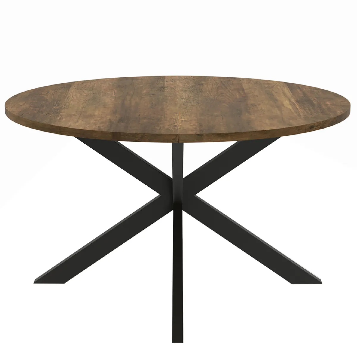 Table basse ronde - Style industriel - Plateau bois effet vieilli - Pieds araignée en métal